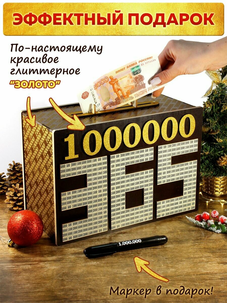 10 цен на Копилка для денег Накопи 1 миллион рублей за 365 дней "Gold Edition", 29х20 см - подарок начальнику, шефу, директору