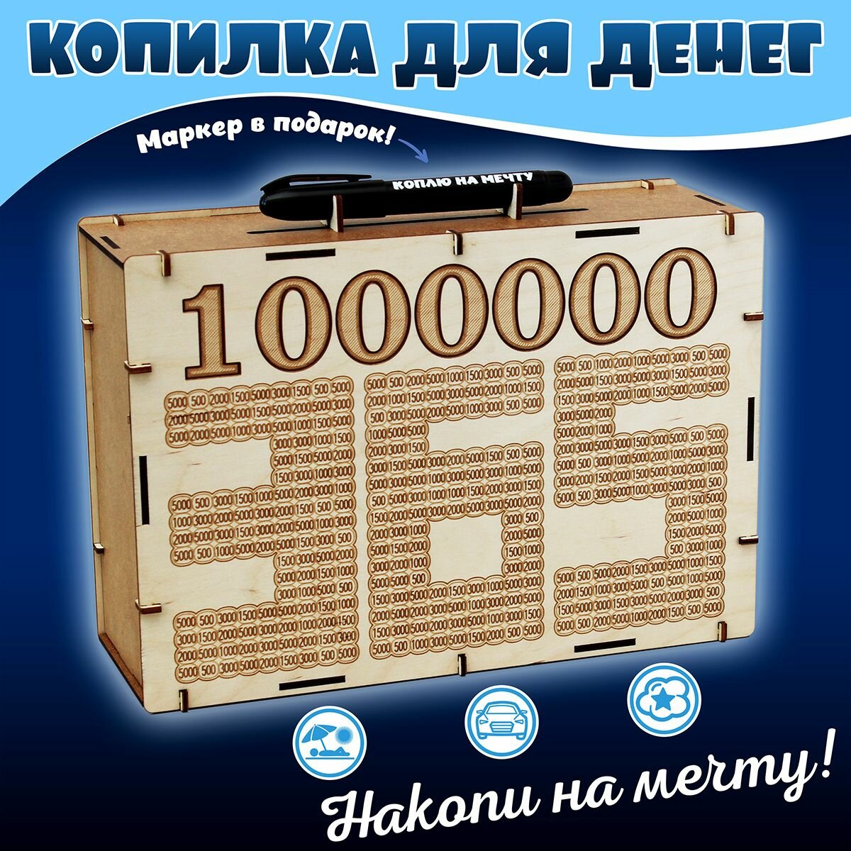 Копилка сборная ЭКО для денег, с маркером - Накопи 500 000 - подарок и сувенир на день рождения 699 ₽