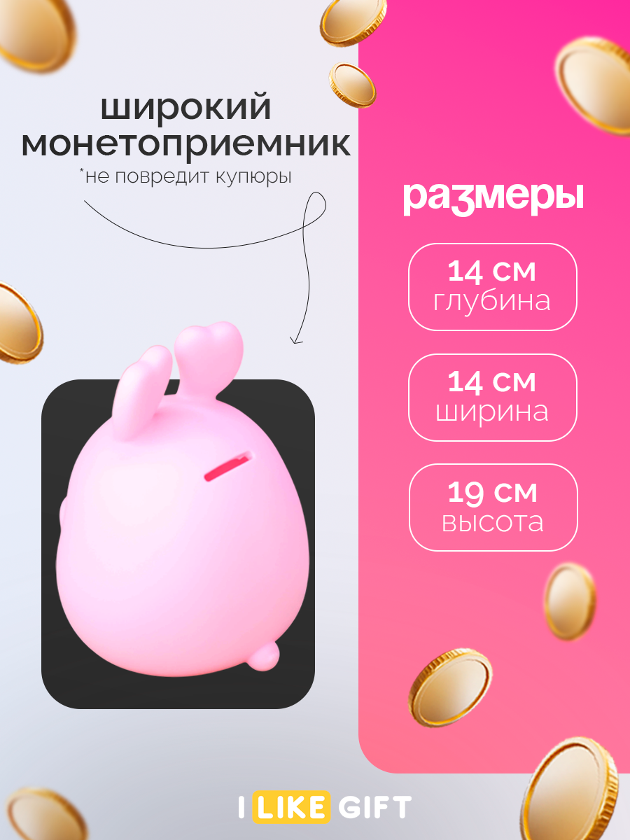 Копилка для денег большая "Кролик" Surprised bunny pink 20 см, для монет и купюр 1 203 ₽