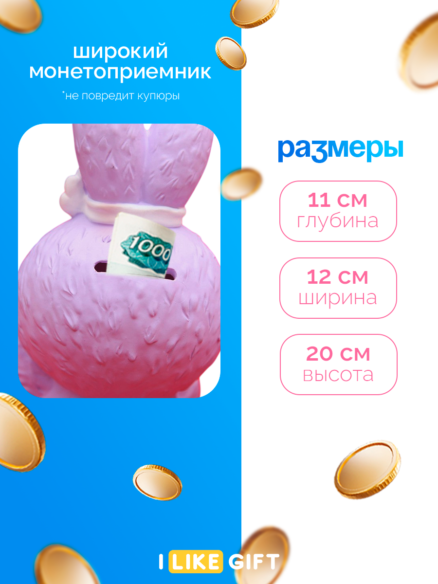 Копилка для денег "Кролик", 22х15х12 см, пластик, для монет и купюр 765 ₽
