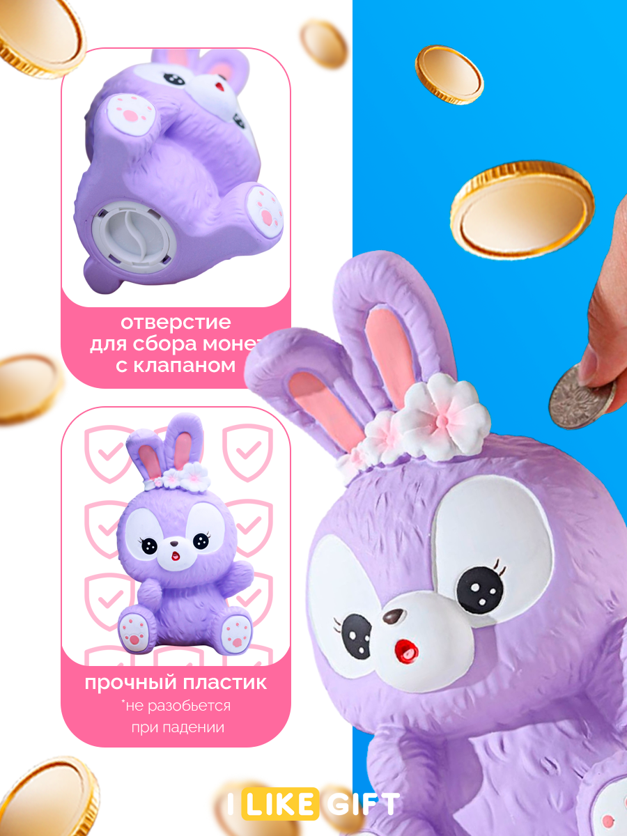 Отзывы на Копилка для денег большая "Кролик" Surprised bunny purple 20 см, для монет и купюр