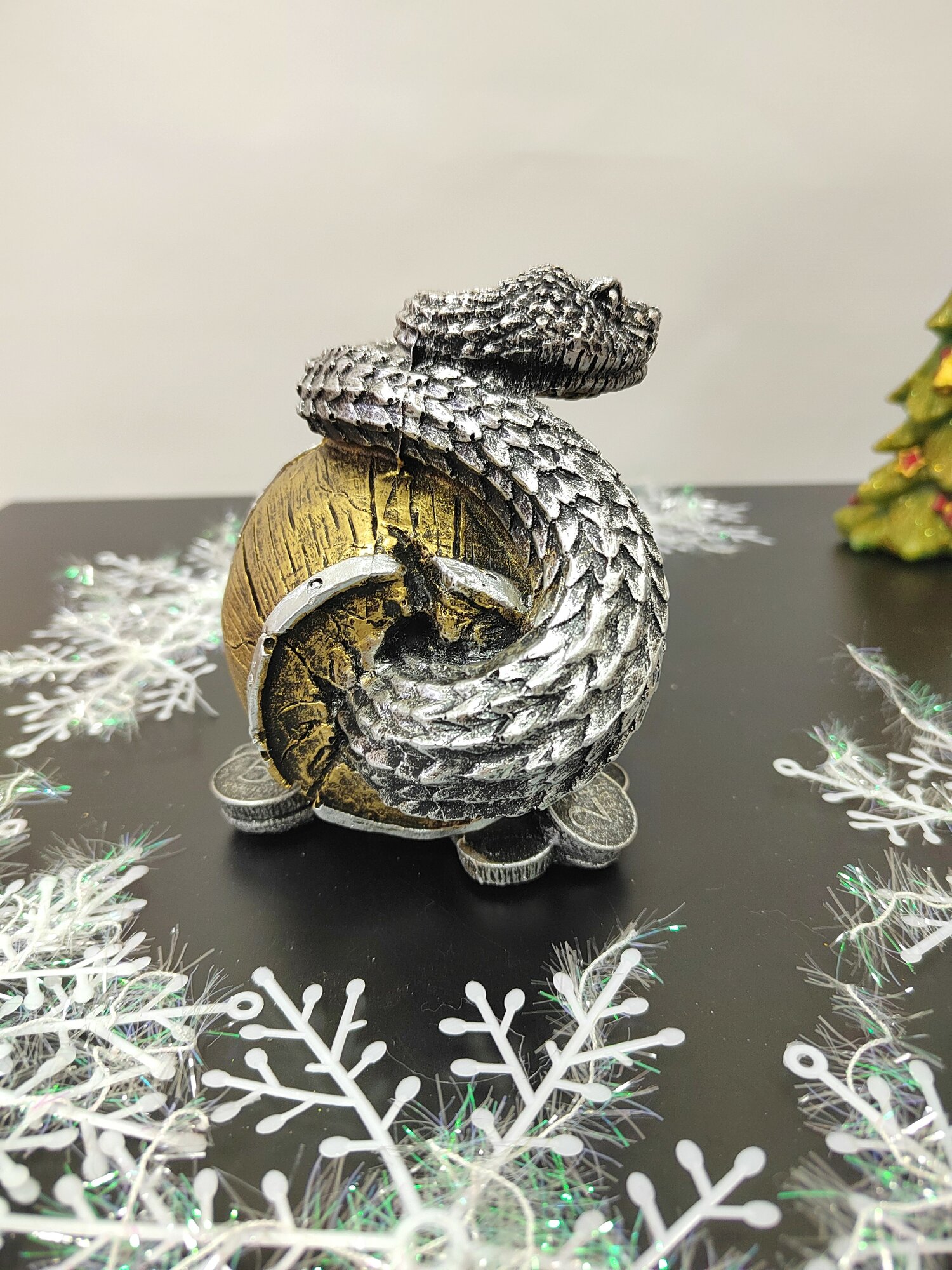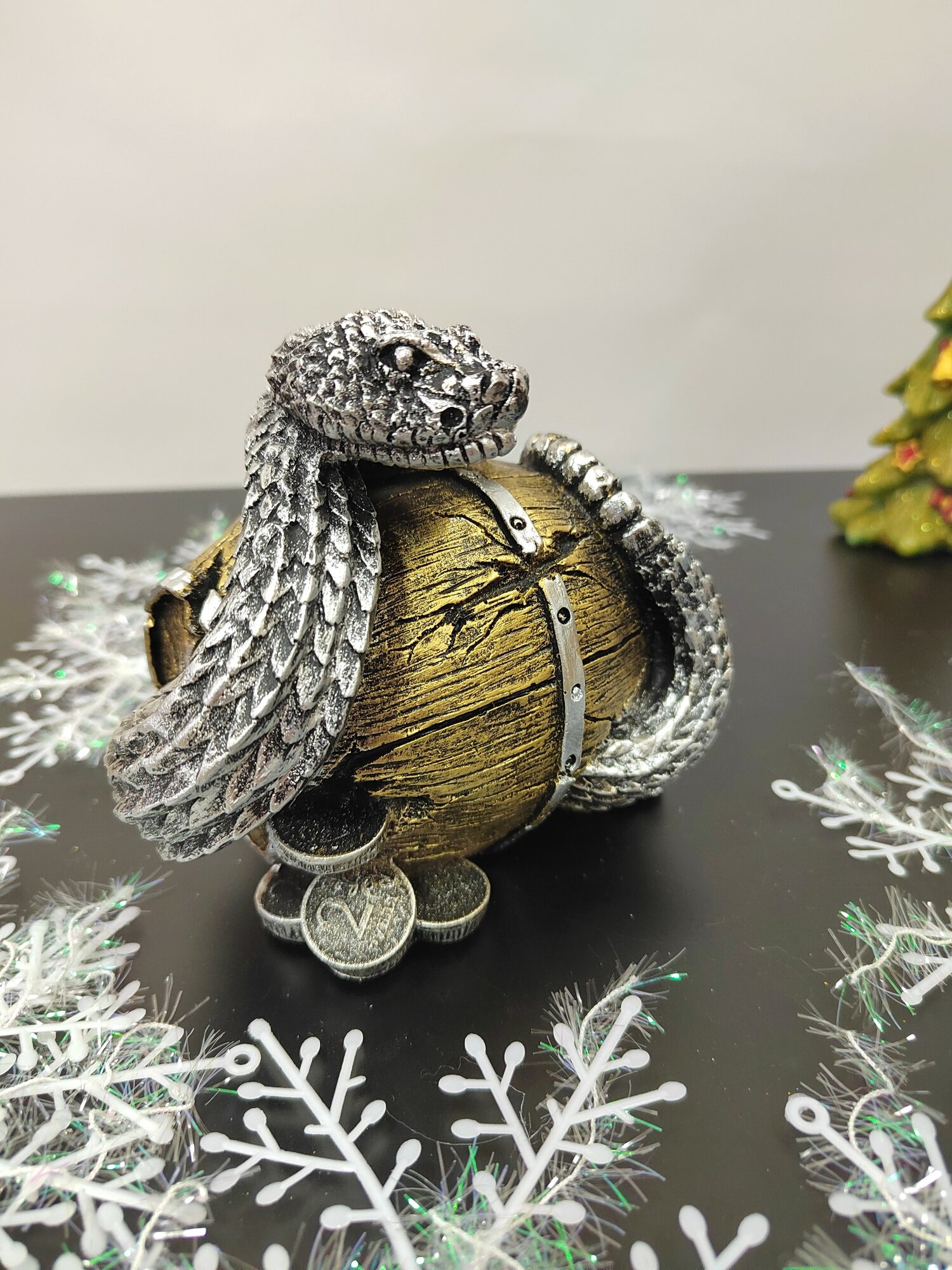 Отзывы на Копилка ЗМЕЯ НА БОЧКЕ декоративная сувенирная для дома и офиса 718533/SK241 (серебро+бронза)15*11*12см