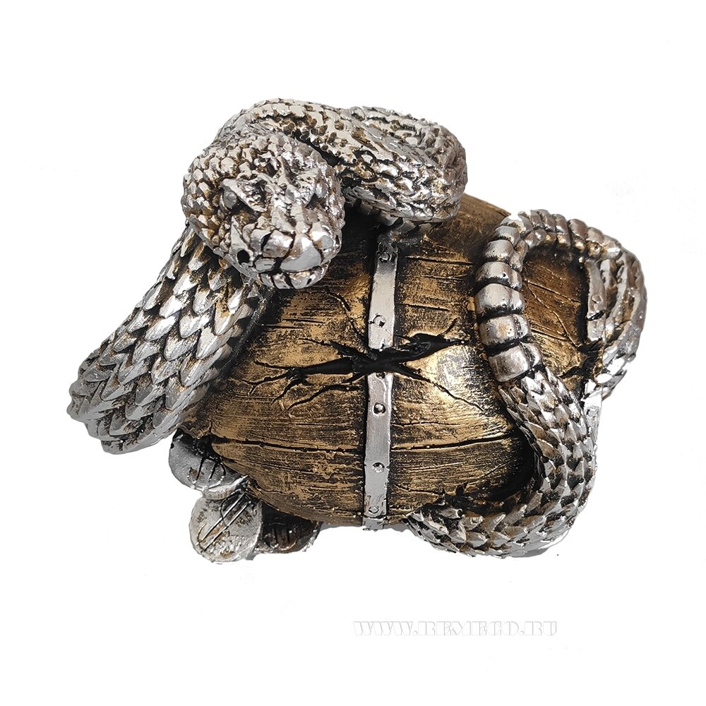 Копилка ЗМЕЯ НА БОЧКЕ декоративная сувенирная для дома и офиса 718533/SK241 (серебро+бронза)15*11*12см информация: