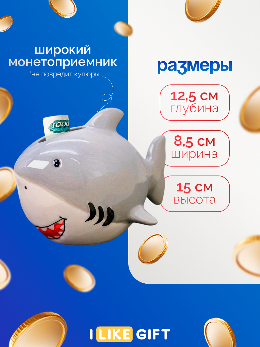 Копилка для денег "Акула", керамика, 8,5 см, для монет и купюр информация: