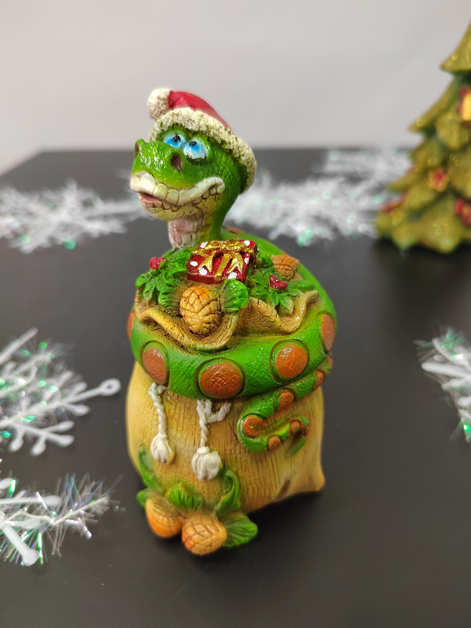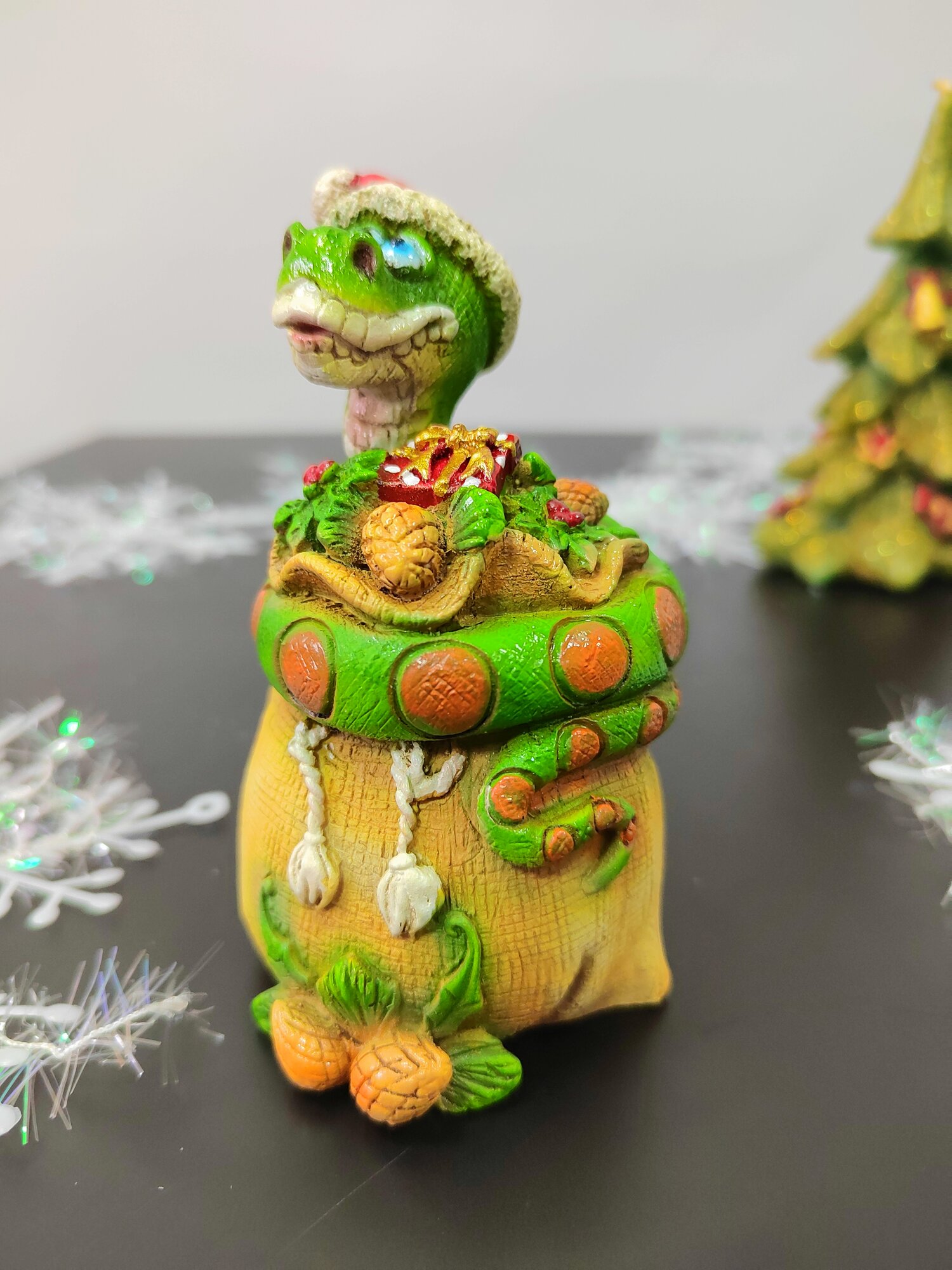 10 цен на Копилка ЗМЕЙКА С МЕШКОМ ПОДАРКОВ декоративная сувенирная для дома (акрил) 7,5*6*11см 716748/SGZ022