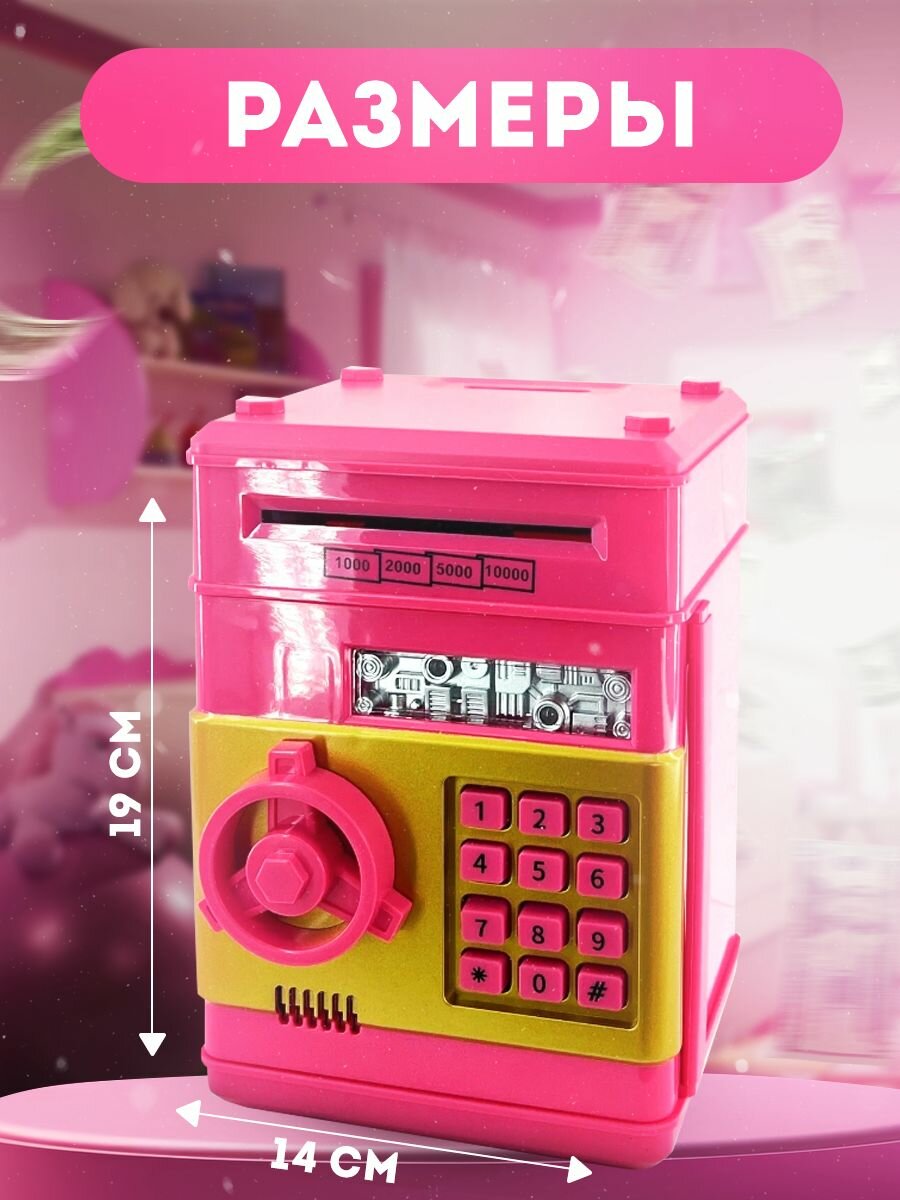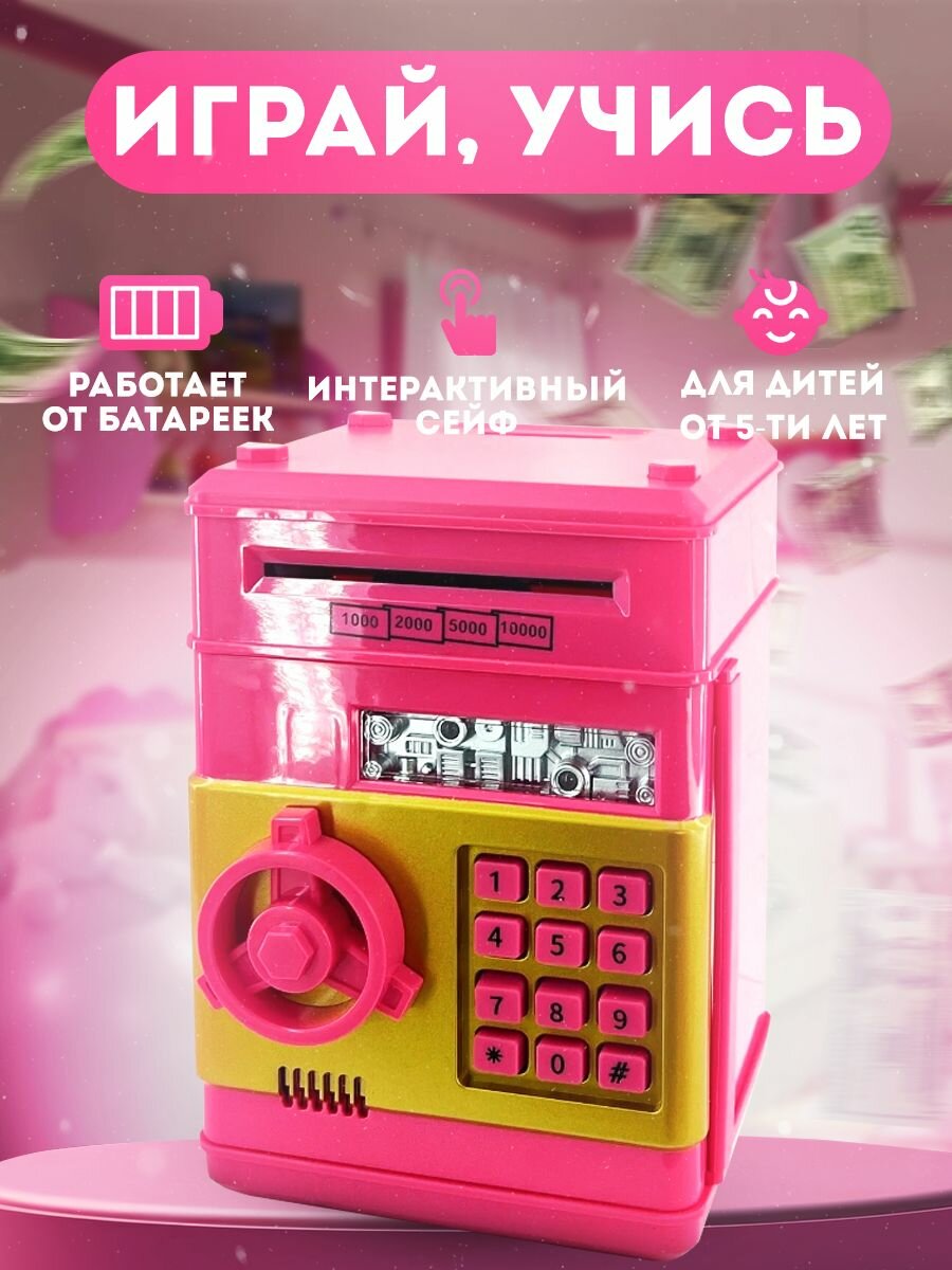Сейф интерактивный с купюроприемником и пин-кодом розовый информация: