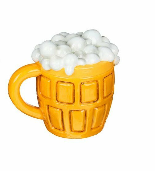 Копилка из искусственного камня в виде пивной кружки, желто-белая информация: