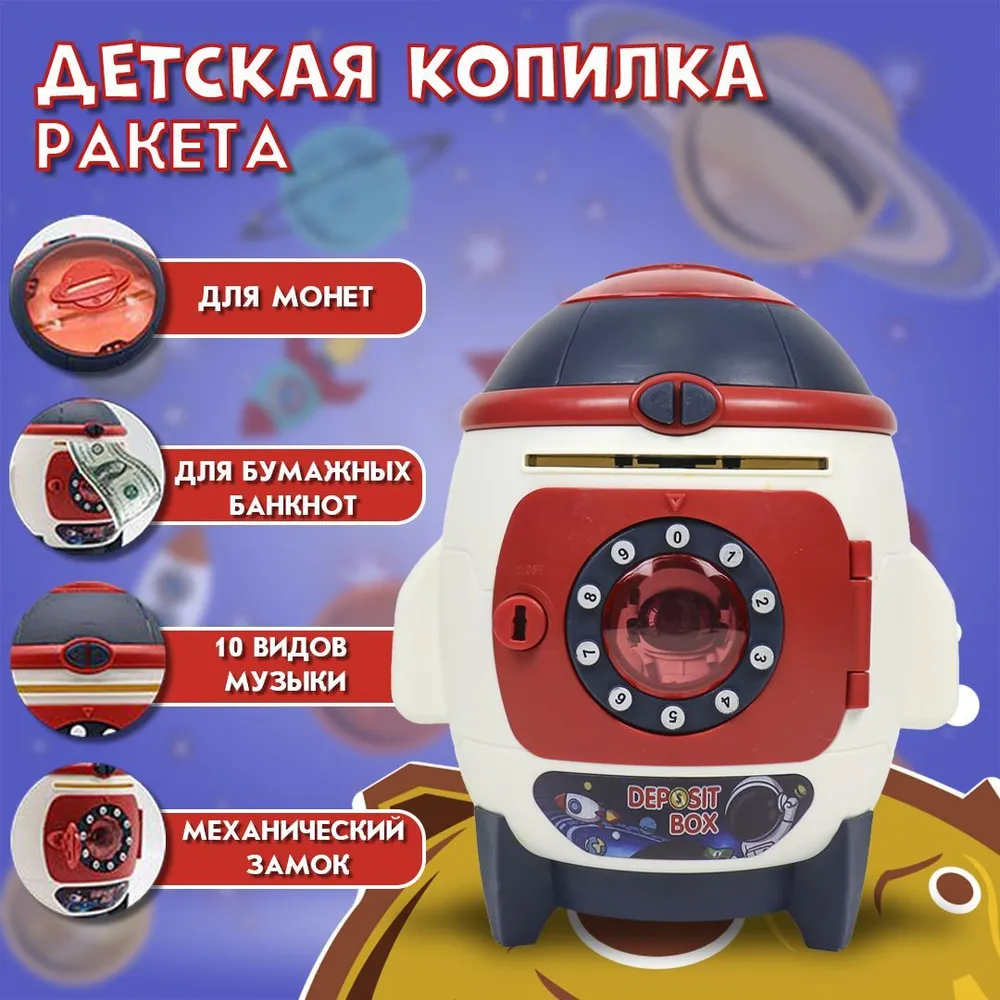 Детская электронная копилка (сейф) "Ракета" для хранения денег информация: