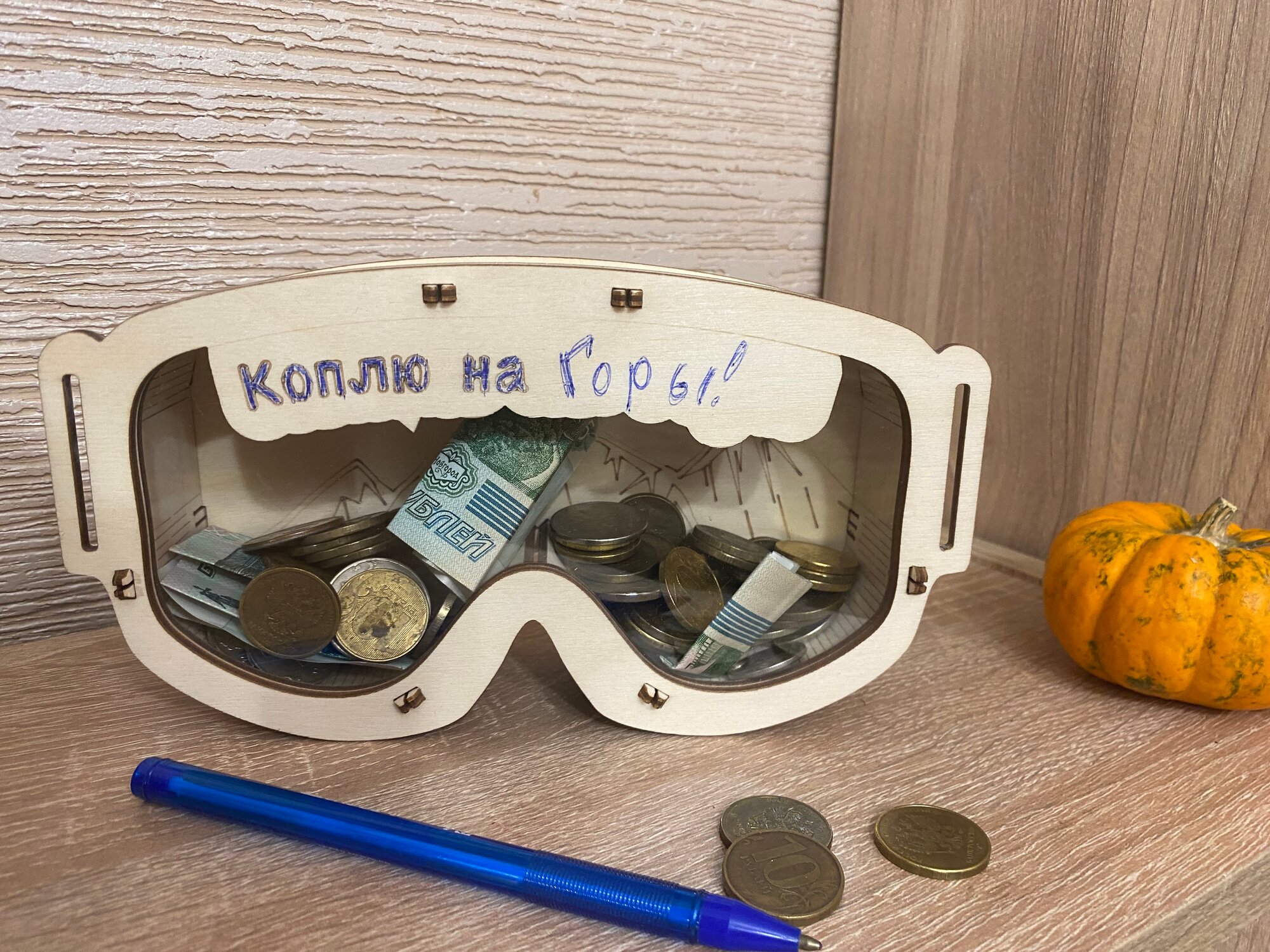 Копилка Горнолыжная маска "Коплю на.", для денег, дерево, длина 11см, ширина 5см, высота 20см информация:
