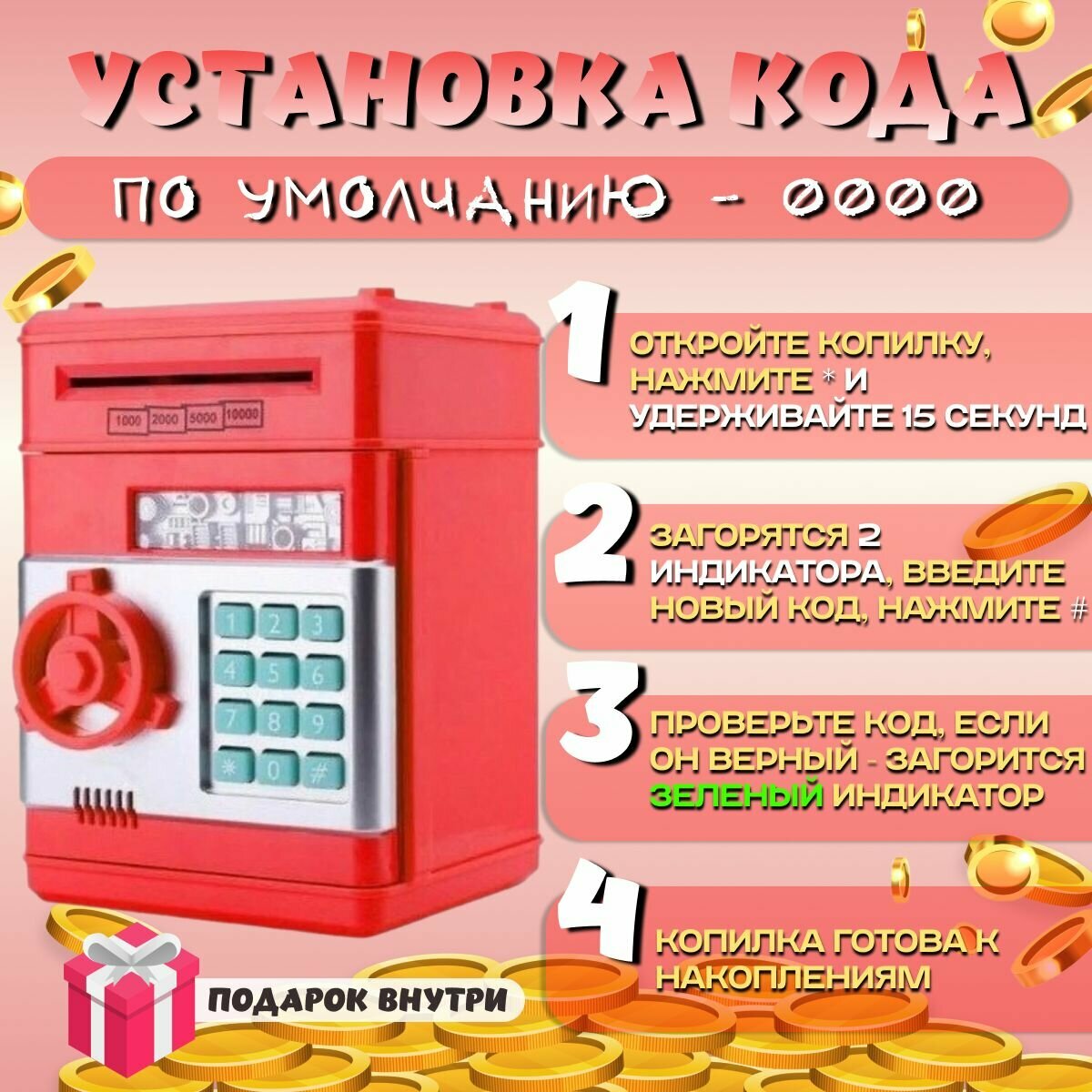 Копилка для денег / музыкальный сейф для детей/ красный информация:
