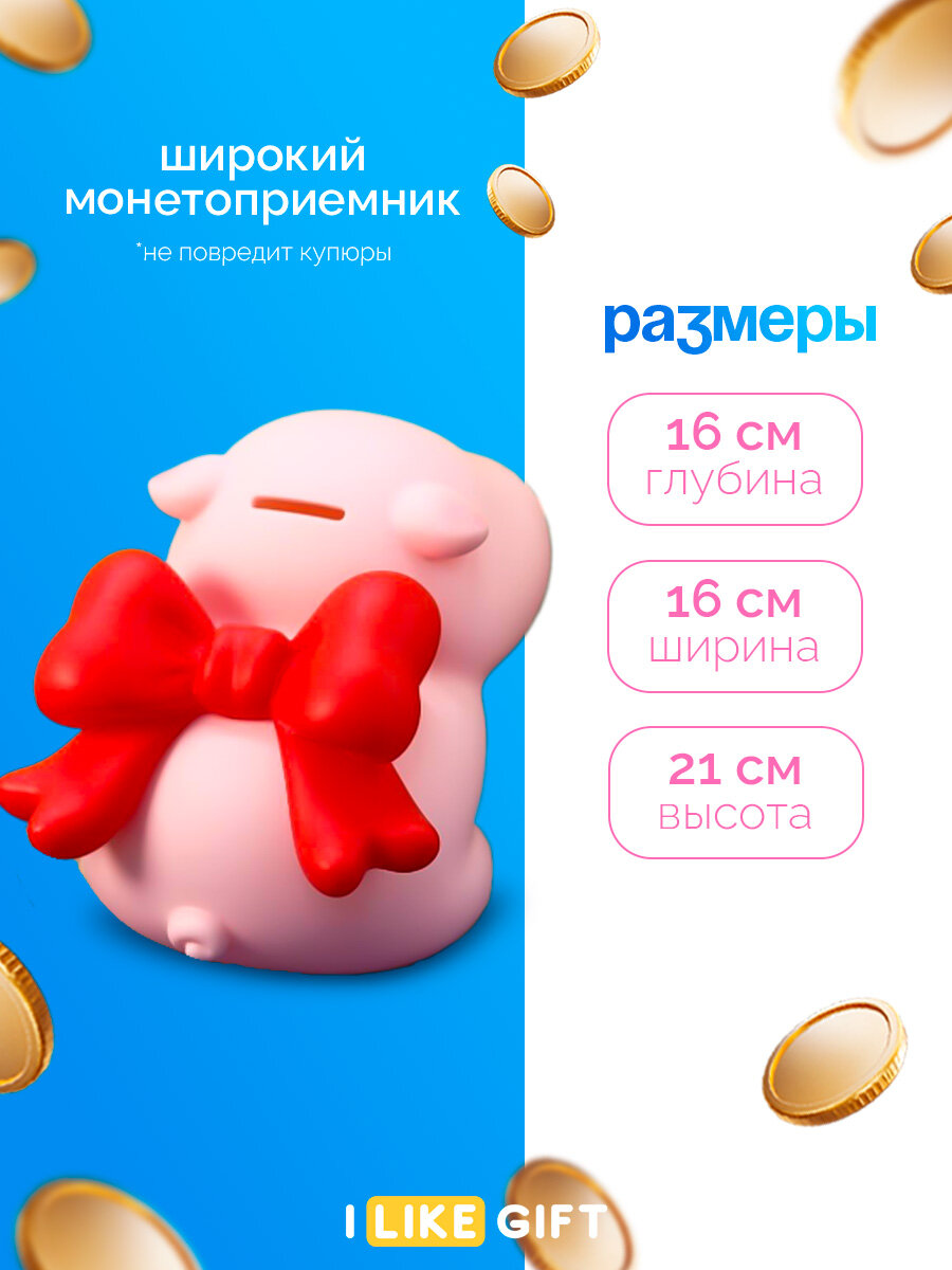 10 цен на Копилка для денег "Свинья с бантиком", 13х15х16 см, пластик, для монет и купюр