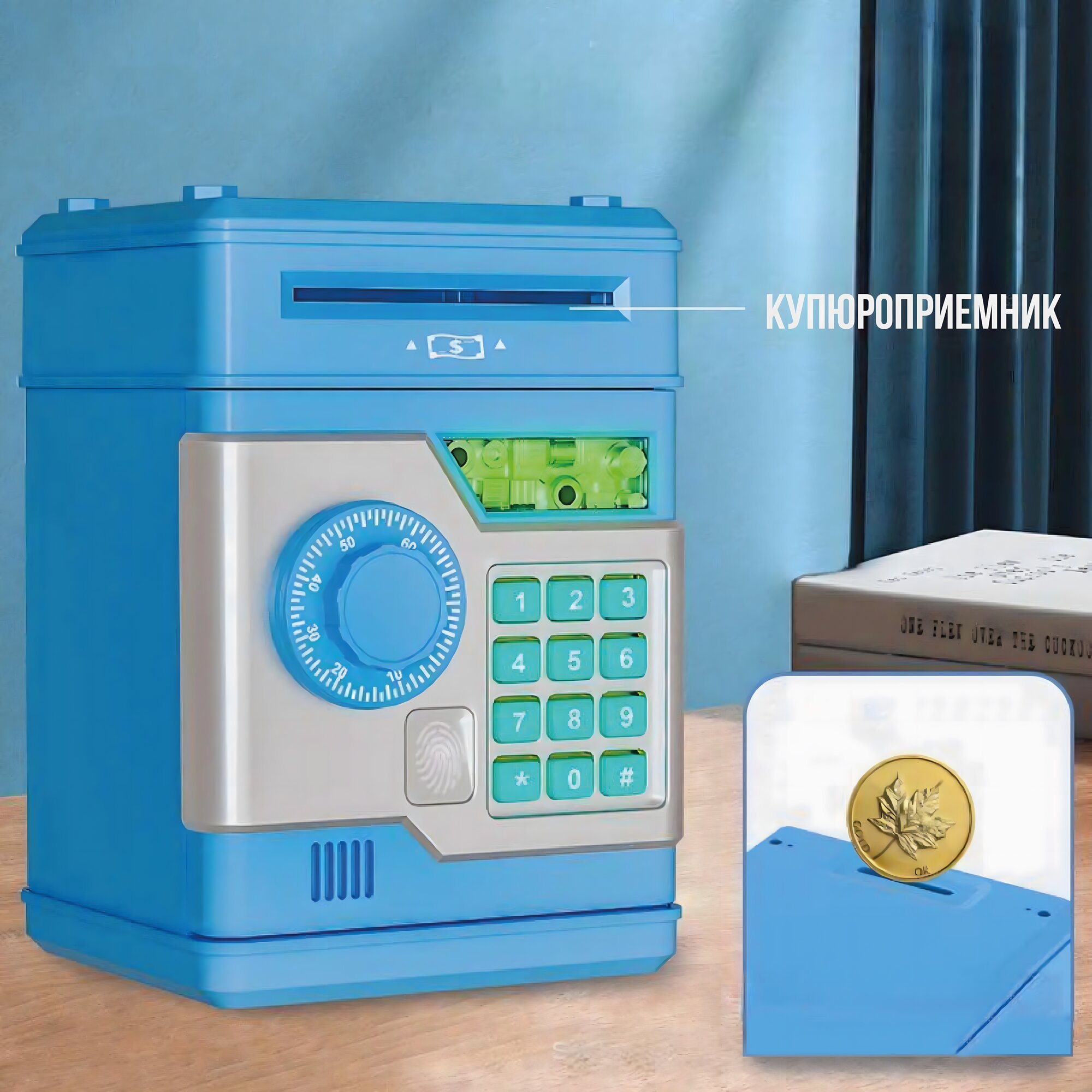 Копилка банкомат Amazon, с отпечатком пальца и звуковыми эффектами, цвет синий с белым информация: