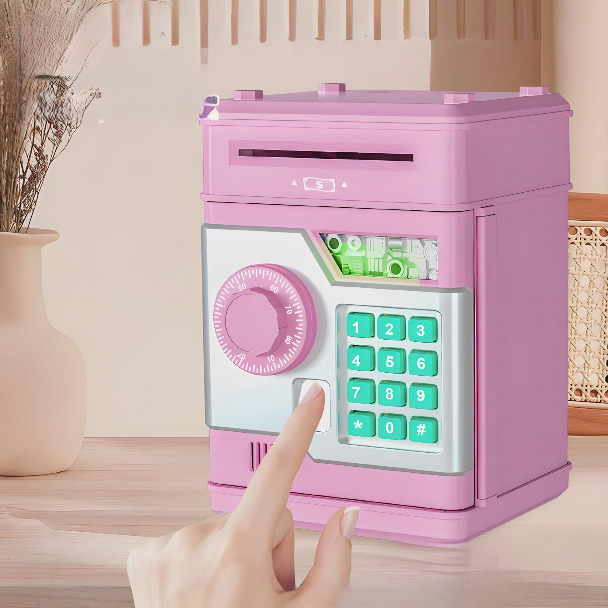 Копилка банкомат Amazon, с отпечатком пальца и звуковыми эффектами, цвет розовый с белым информация: