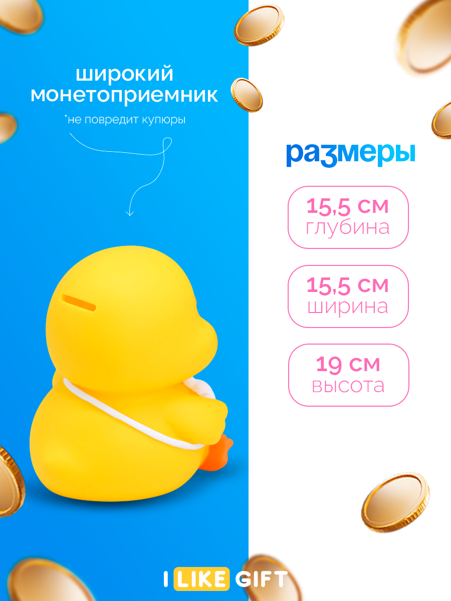 Копилка для денег "Утенок", желтый, 14х16х15 см, пластик, для монет и купюр информация: