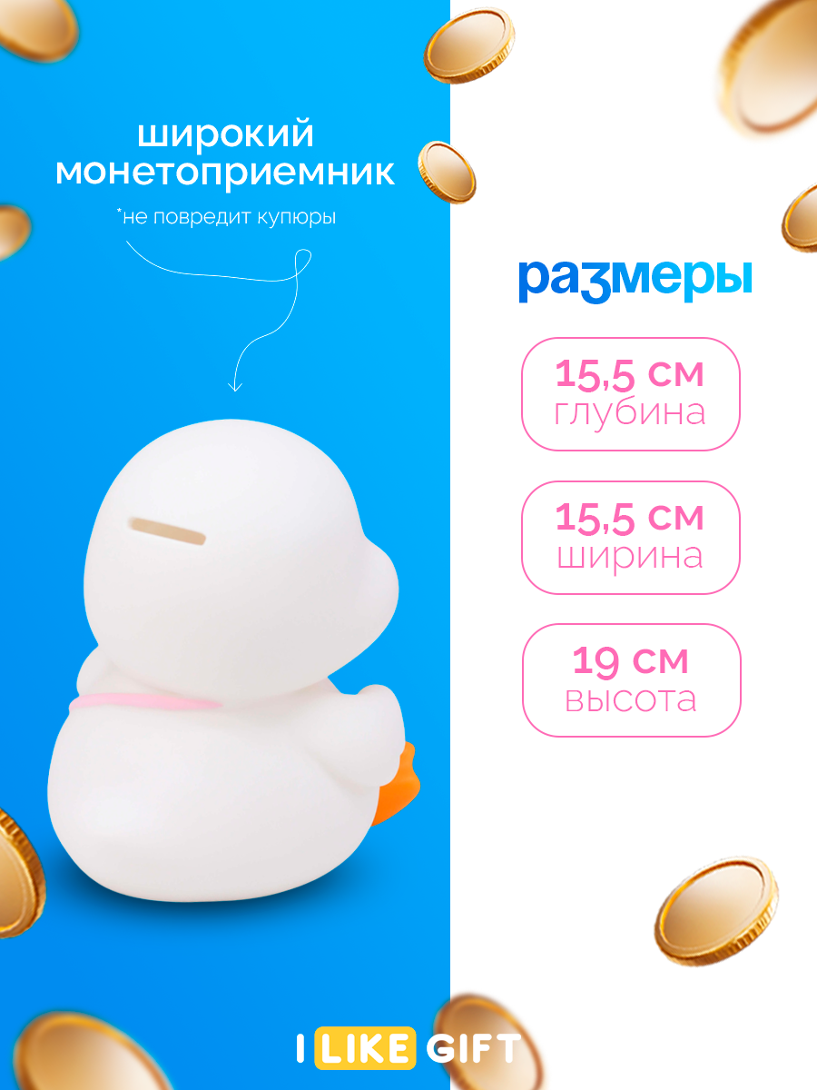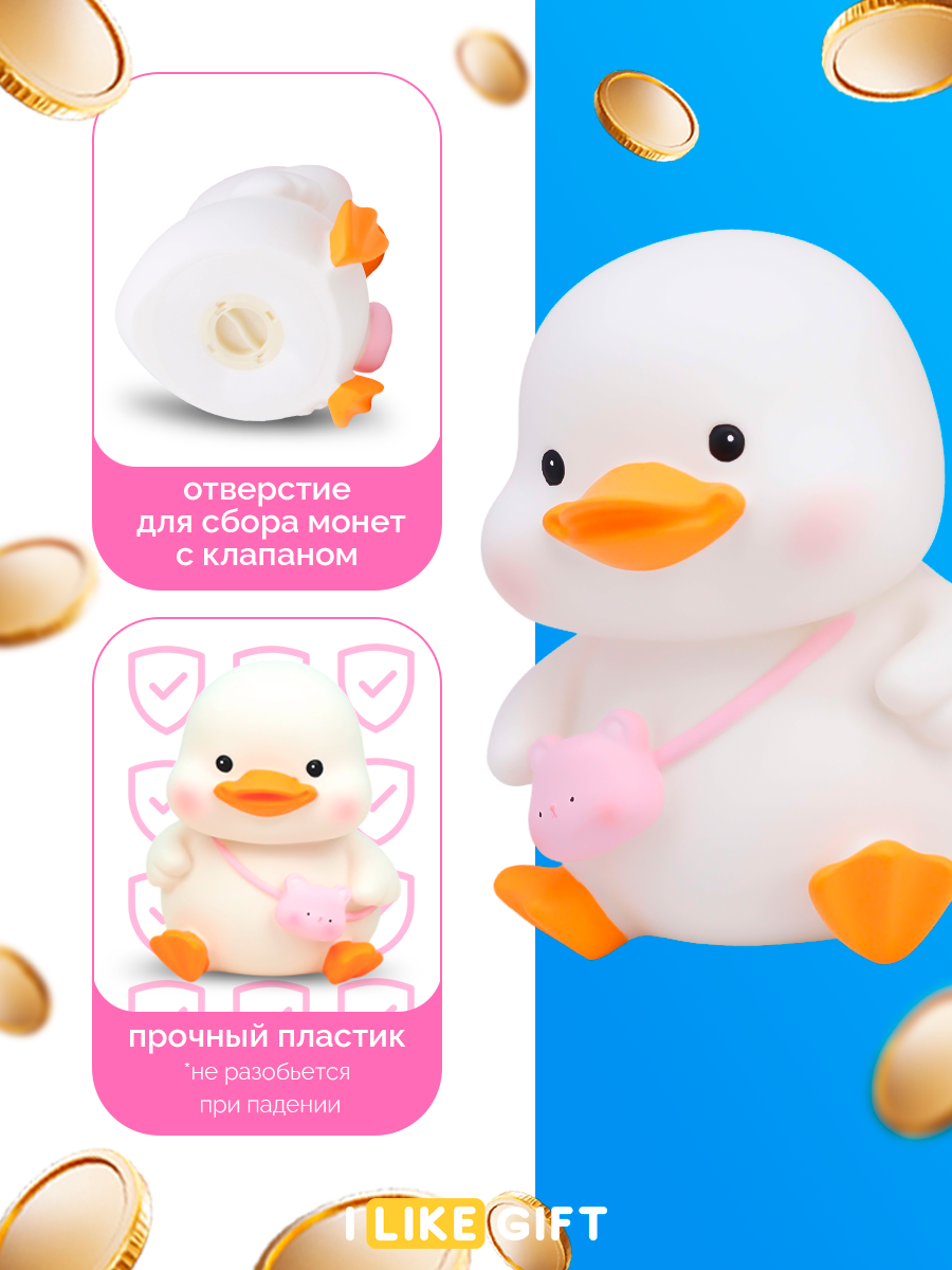 10 цен на Копилка для денег "Утенок", белый, 14х16х15 см, пластик, для монет и купюр