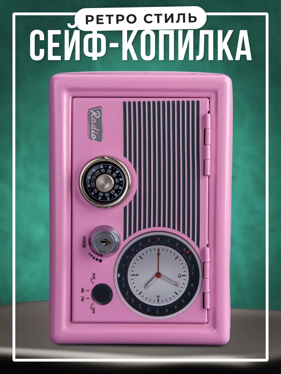 Отзывы на Копилка-сейф для денег в ретро стиле с замком и ключами, розовый