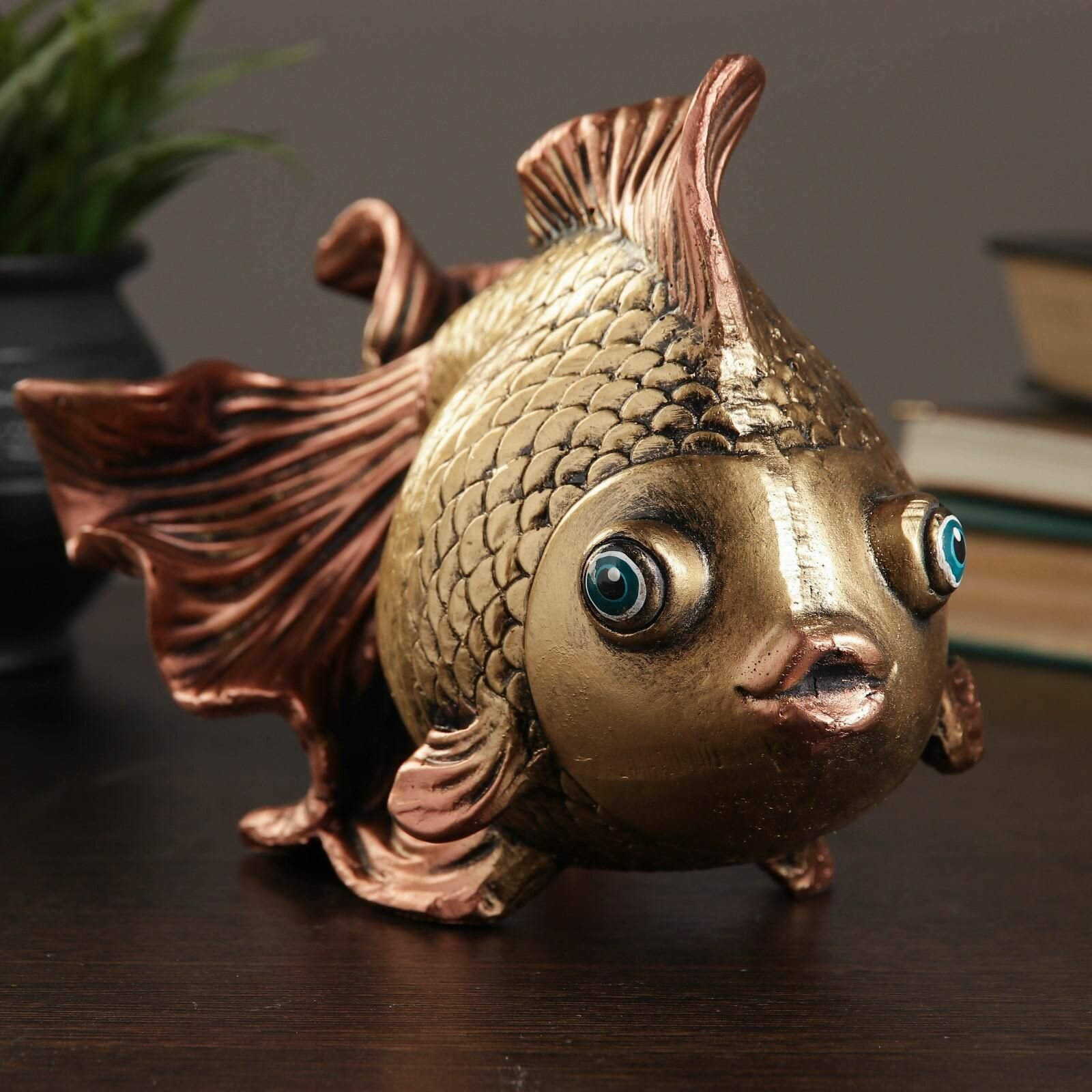 Копилка "Рыбка" золотая, 20х12х15см 801 ₽