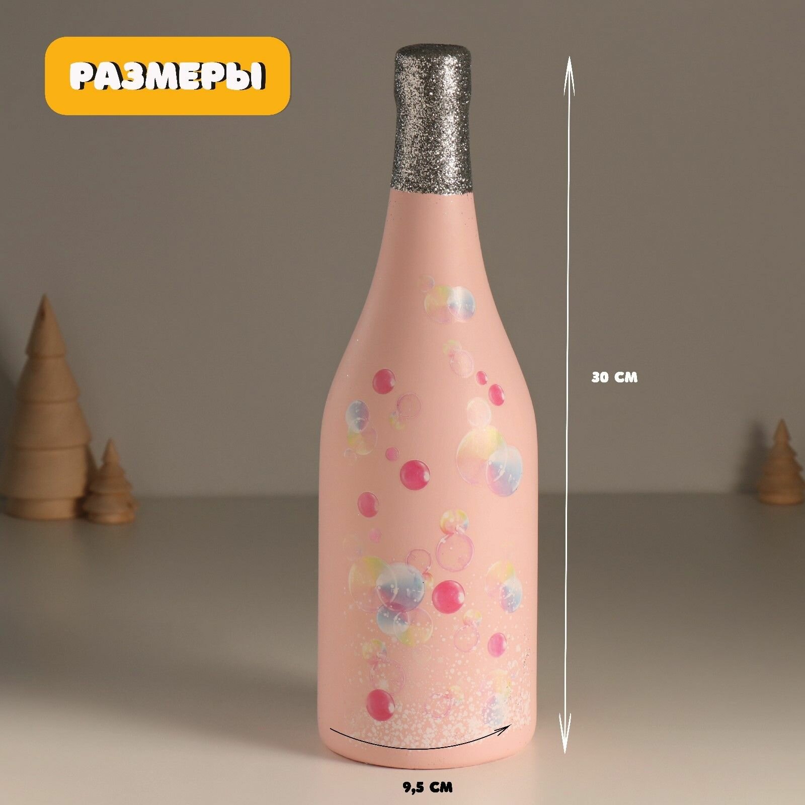 Копилка керамика "Бутылка шампанского - Игристое настроение" розовая 9,5х9,5х30 см информация: