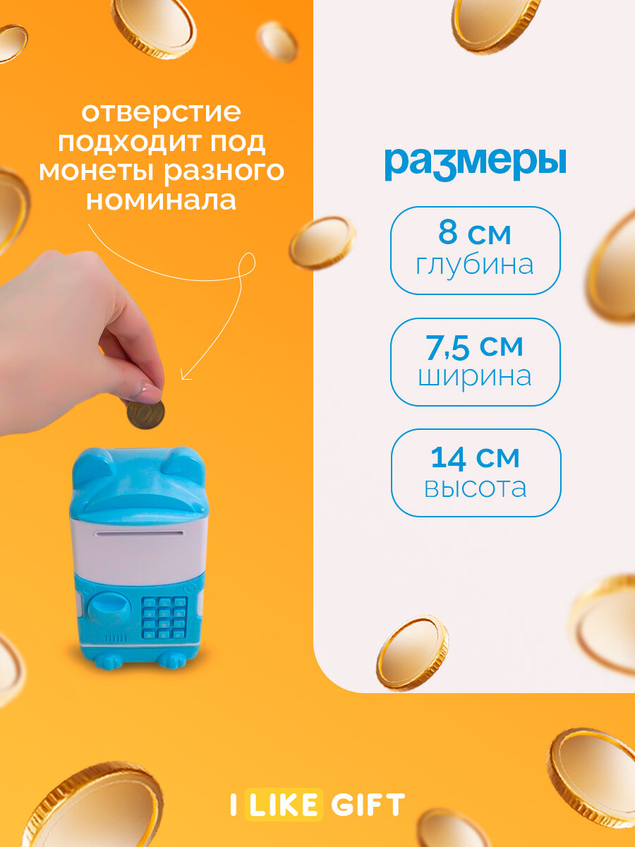Сейф копилка для денег детская "Cute animal", blue 14x8 см информация: