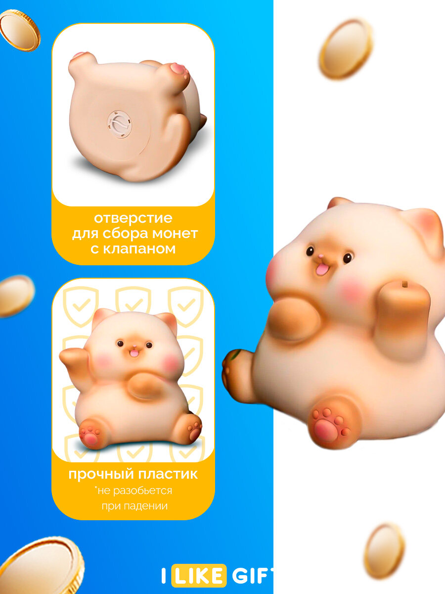 Копилка для денег "Котик с щечками", 12х15х14 см, пластик, для монет и купюр 761 ₽