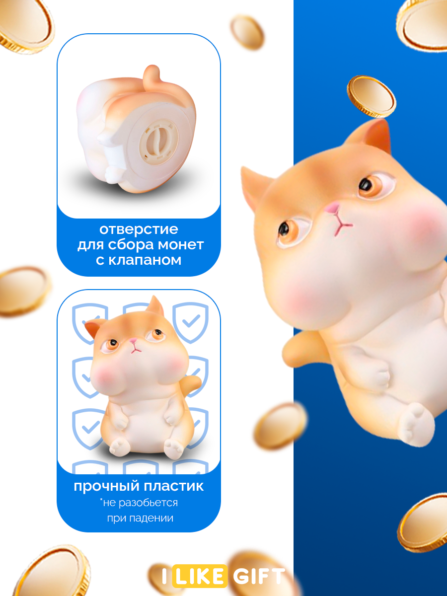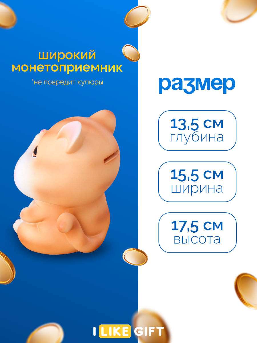 10 цен на Копилка для денег "Котик с щечками", 12х15х14 см, пластик, для монет и купюр