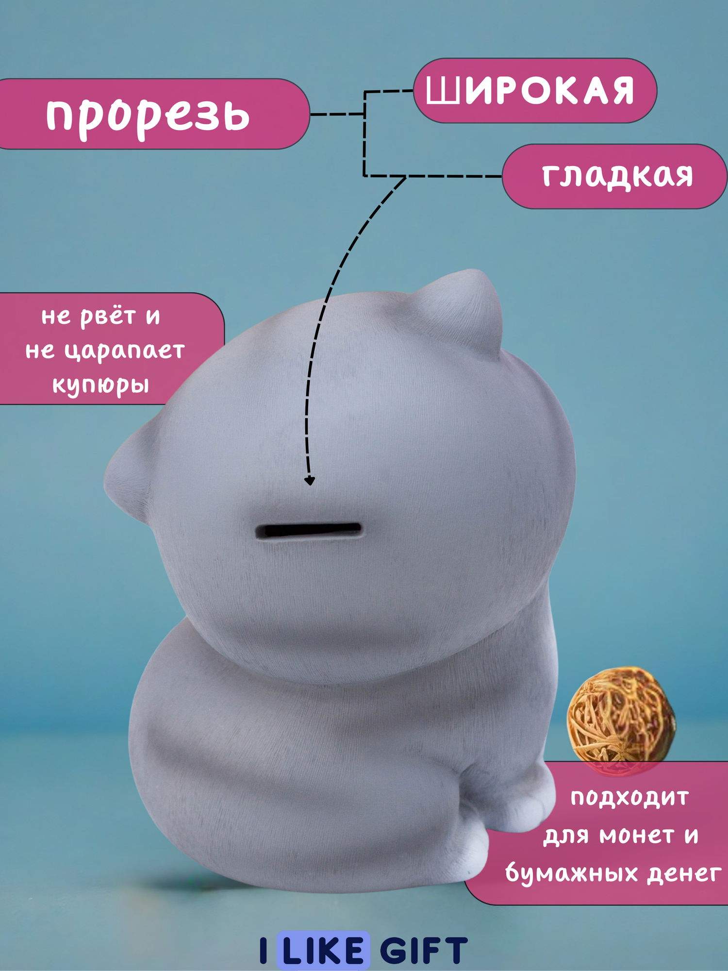 Отзывы на Копилка пластиковая для денег "Gray cat", turned around, 19,5 см
