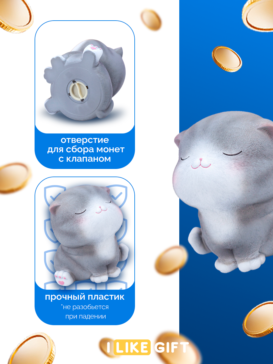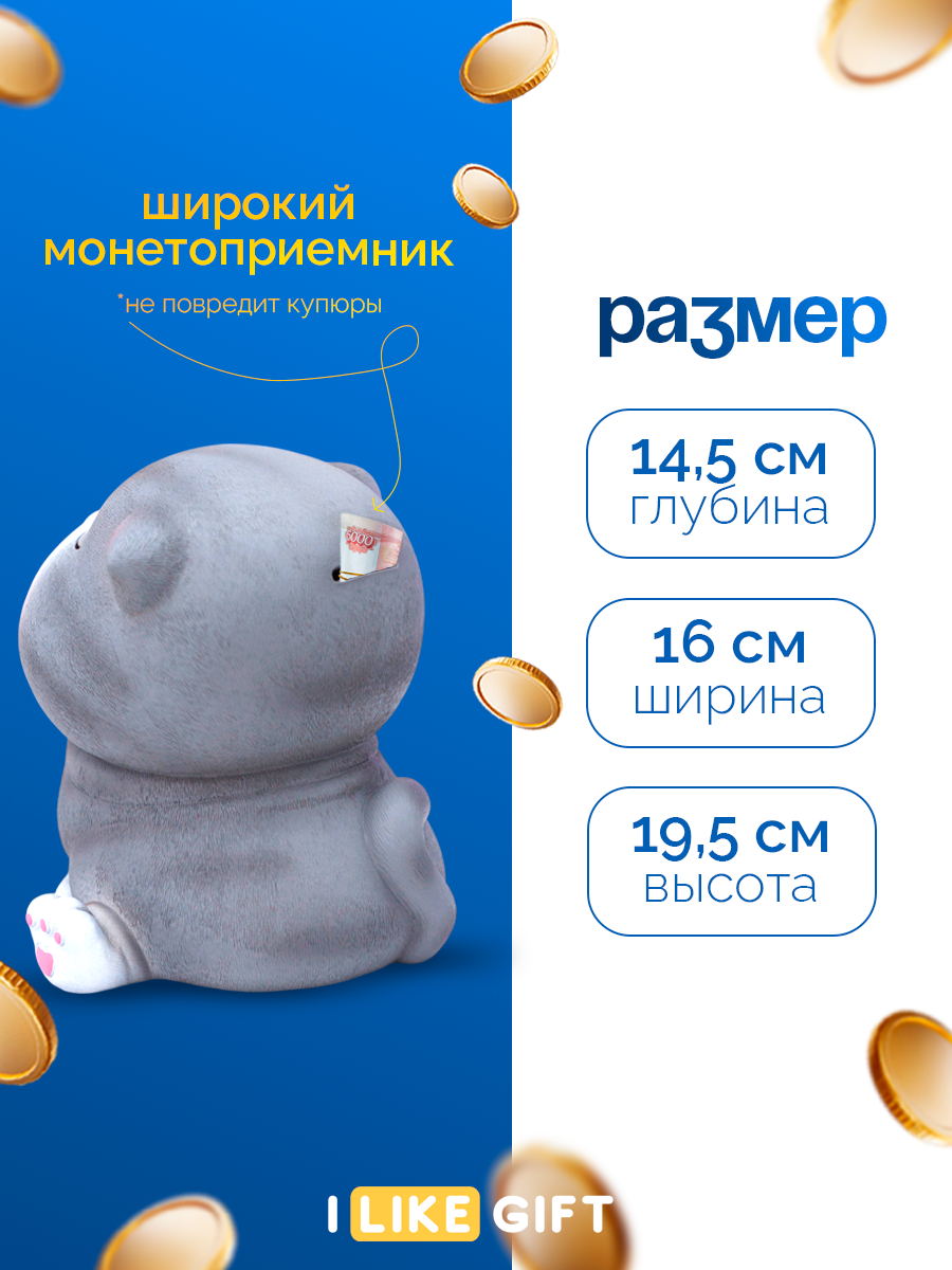 Копилка пластиковая для денег "Gray cat", turned around, 19,5 см 1 531 ₽