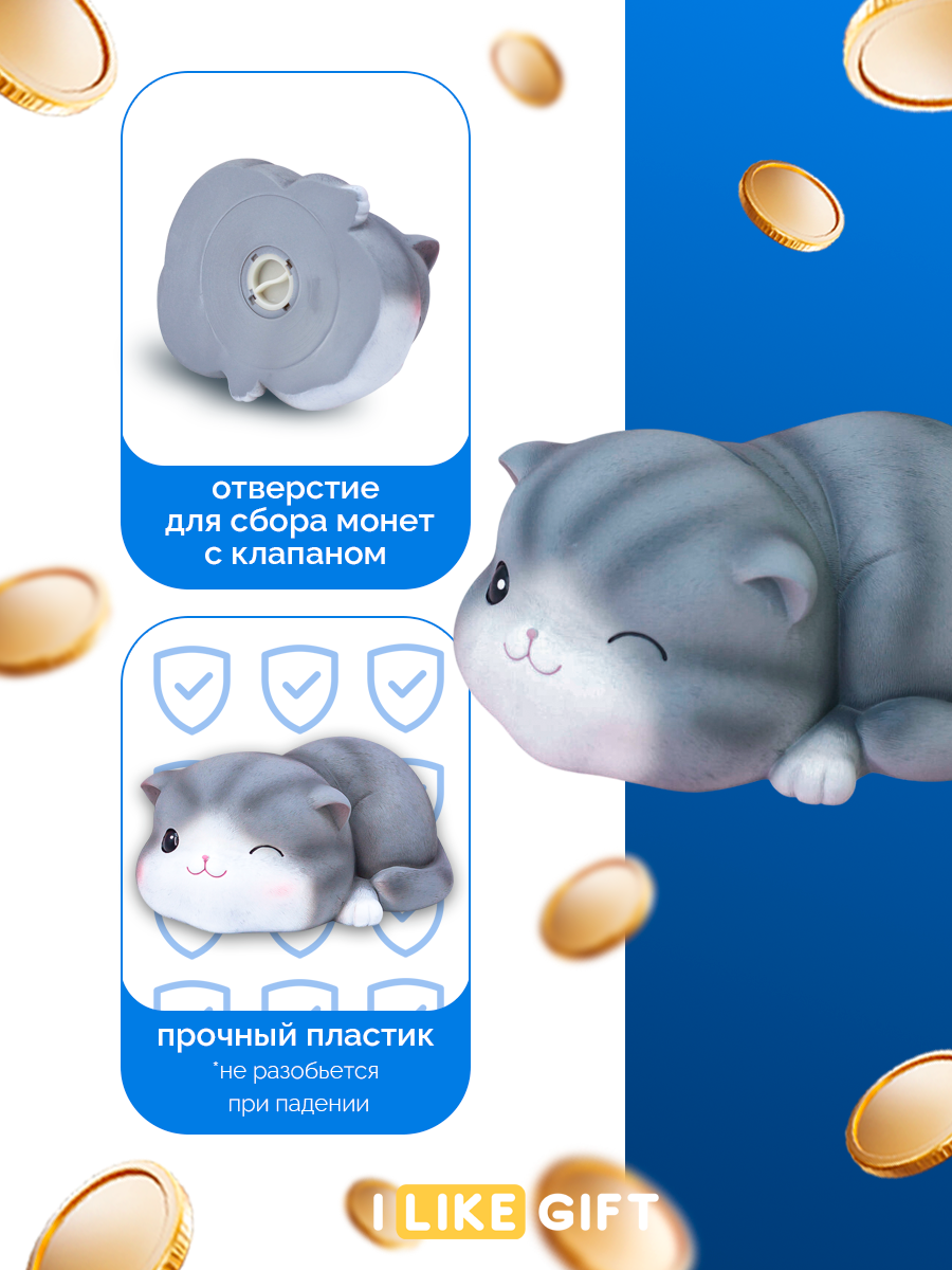 Копилка пластиковая для денег "Gray cat", winks, 18,5 см информация: