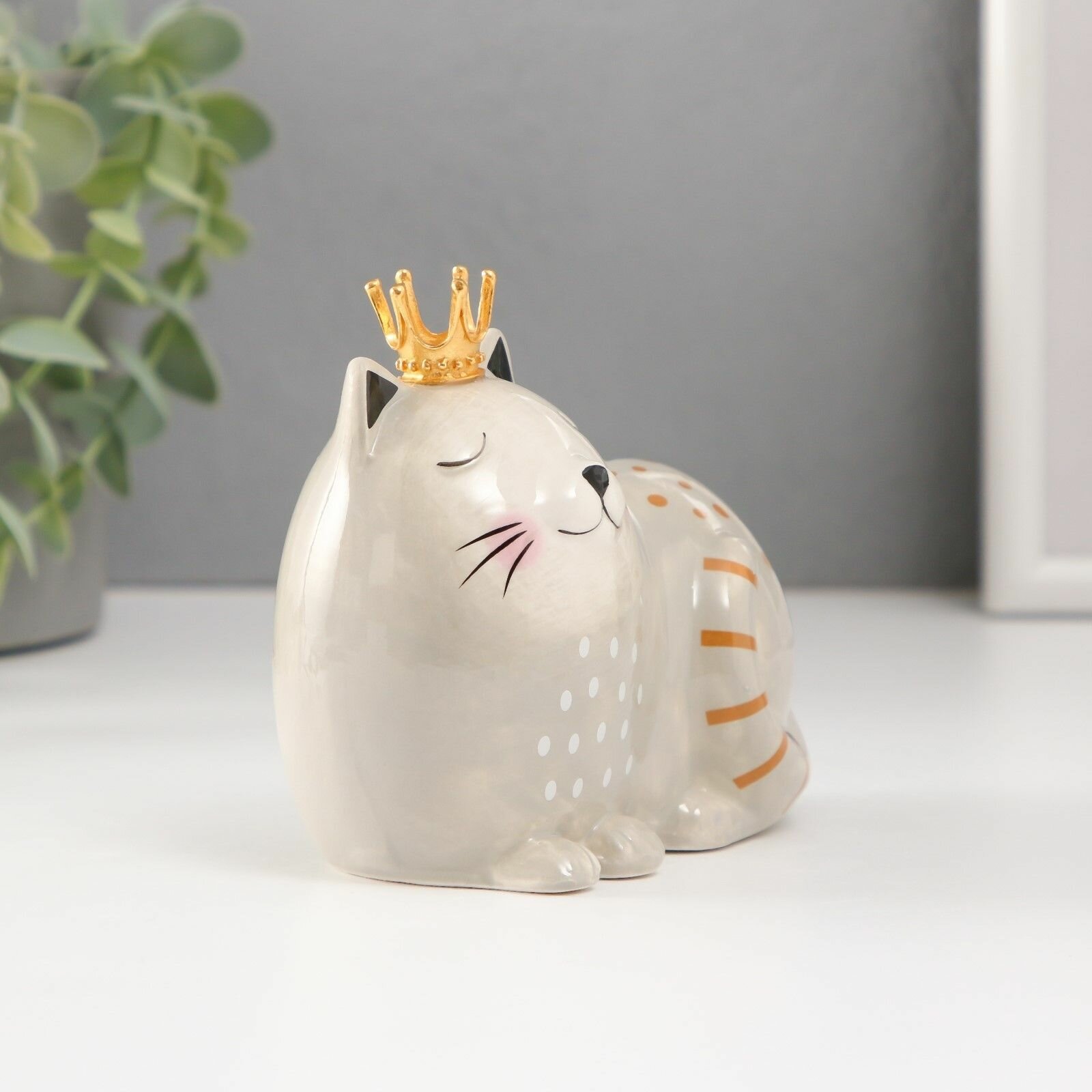 Отзывы на Копилка керамика "Спящая серая кошка в короне" 11,6х7,4х10,3 см