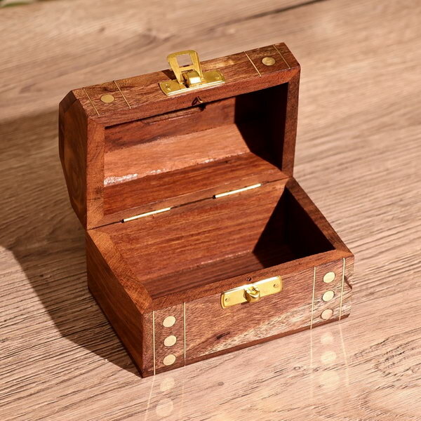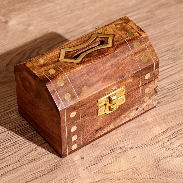 10 цен на Копилка "Бокс", 11x7x7 см, дерево шишам, цвет: золотистый, тип копилки: открытый
