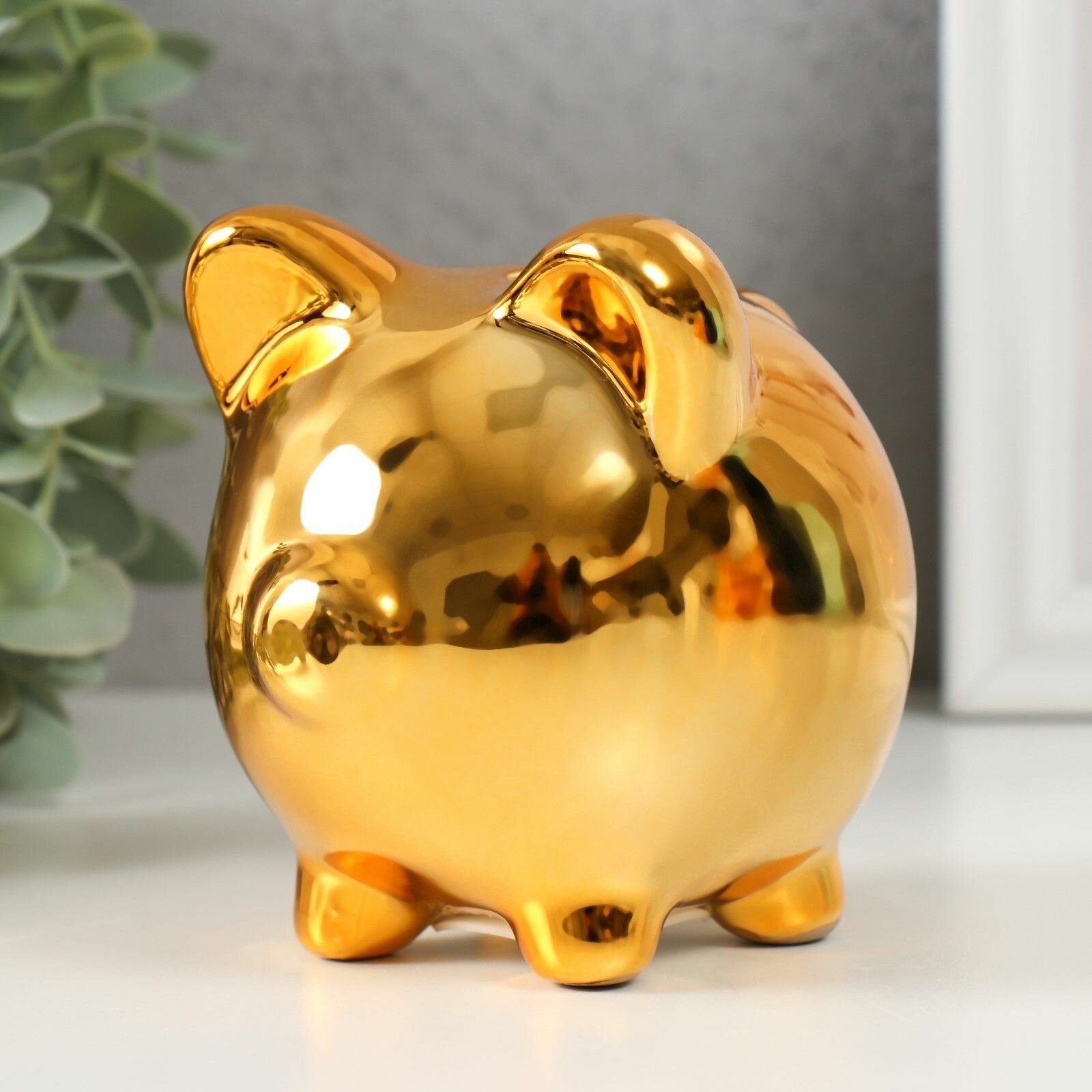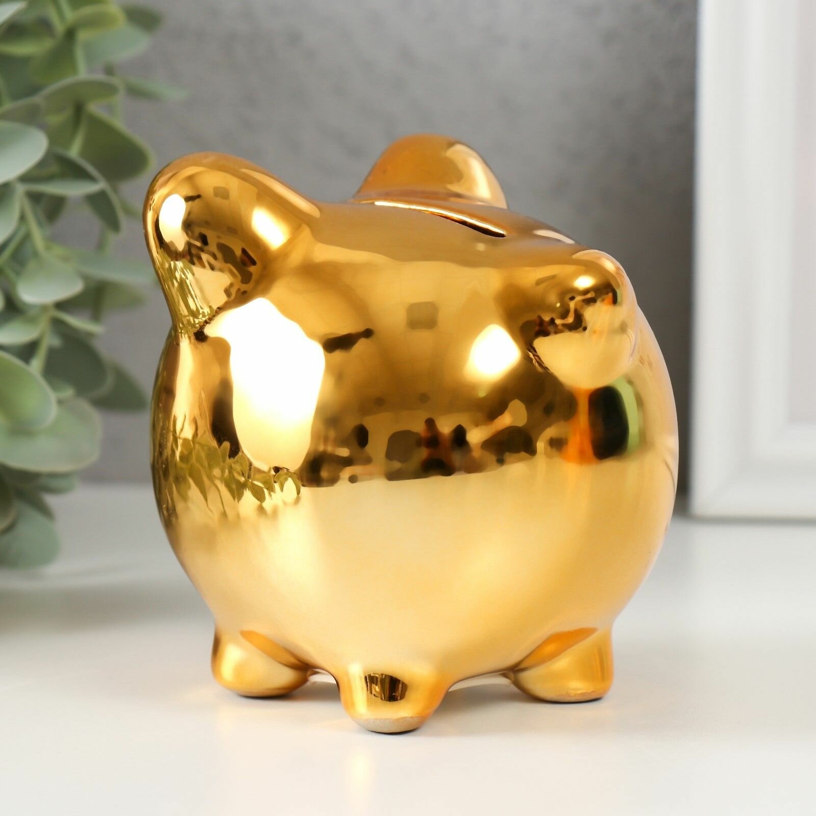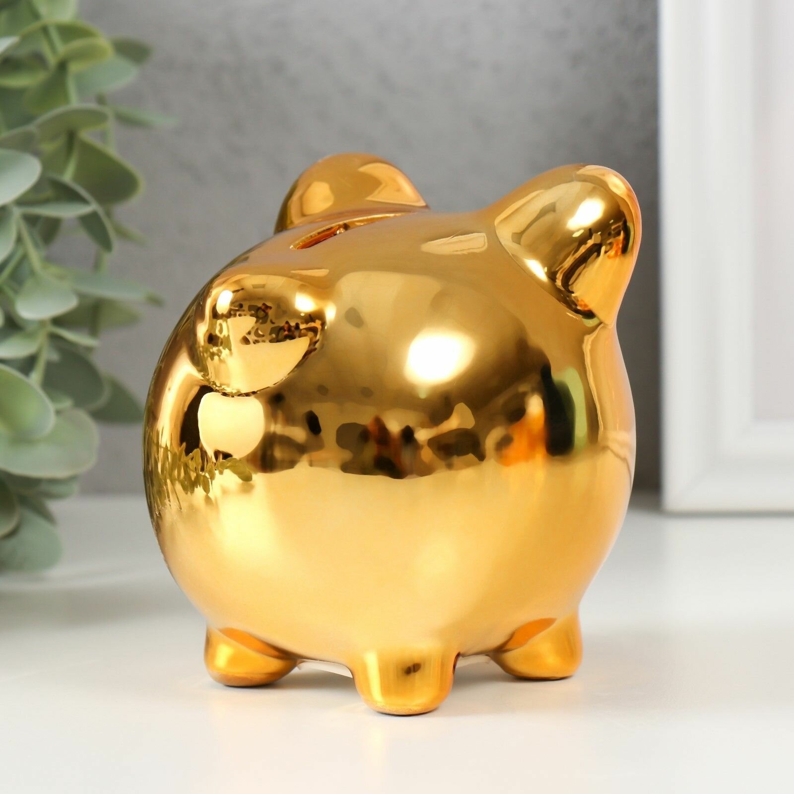 Копилка для денег "Свинки: Накопилка", керамика, золотая, 12.5x8x14 см 1 057 ₽