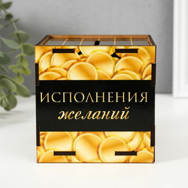Отзывы на Деревянная копилка для денег "Исполнение желаний", куб, с надписью, 10x10х10 см