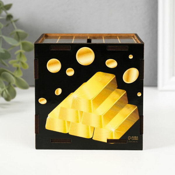 Деревянная копилка для денег "Царская копилка", куб, с надписью, 10x10х10 см 306 ₽