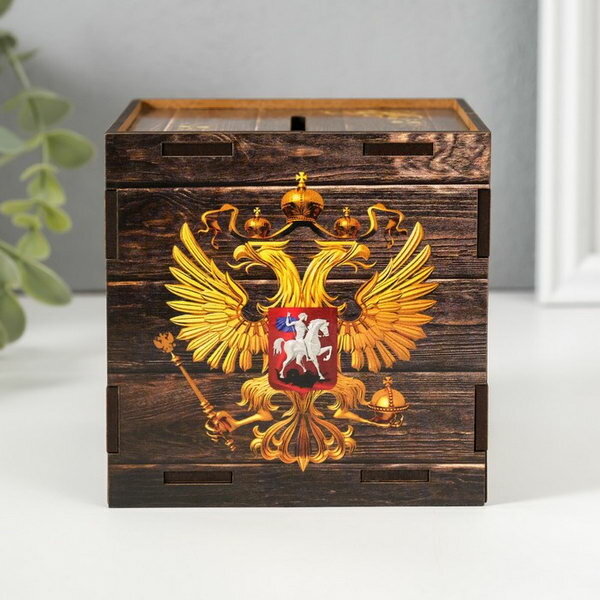 Деревянная копилка для денег "Царская копилка", куб, с надписью, 10x10х10 см информация: