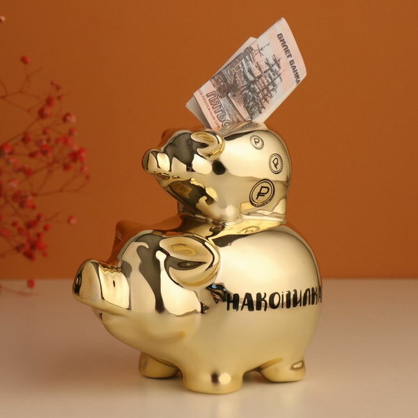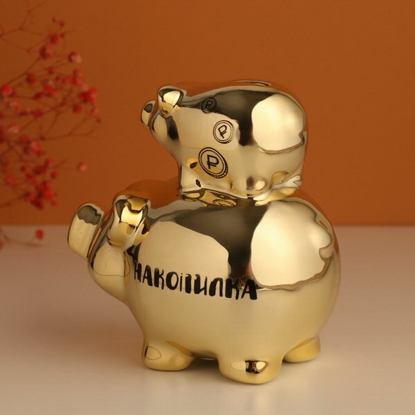 10 цен на Копилка для денег "Свинки: Накопилка", керамика, золотая, 12.5x8x14 см