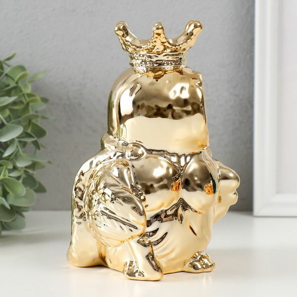 Копилка для денег "Филин в короне и мантии", керамика, золото, 12x12x18.5 см информация: