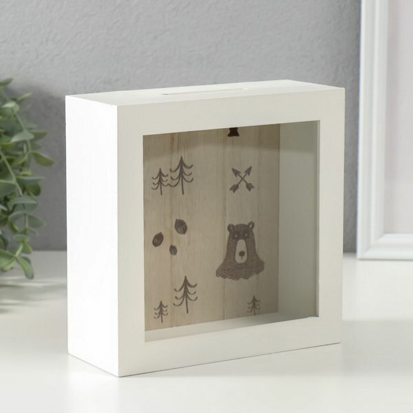 Интерьерная копилка для купюр и монет "Лесные звери", дерево, 6.5x16x16 см информация: