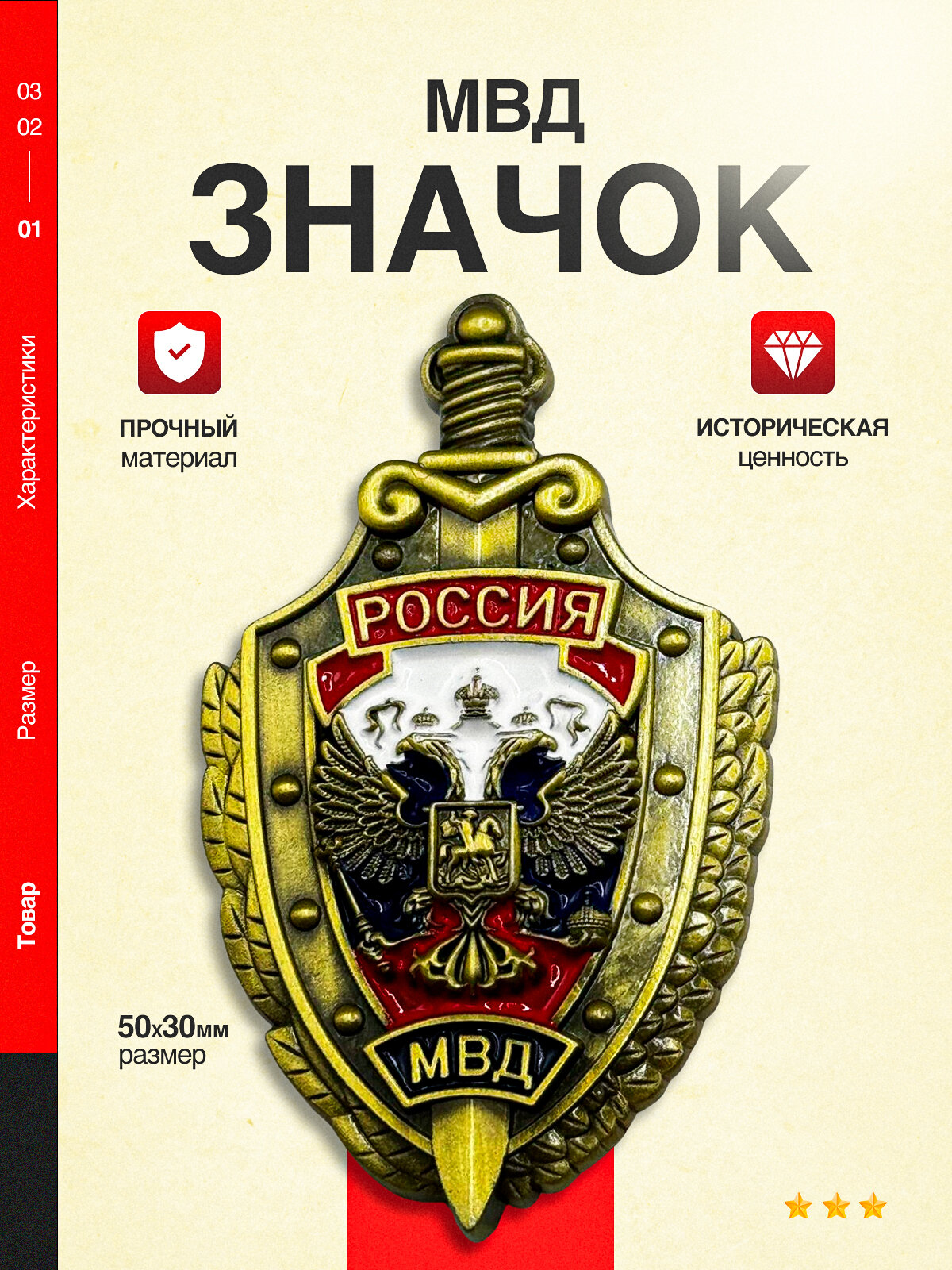 Отзывы на Значок МВД России, металлический, герб РФ на одежду, цветная эмаль, коллекционный