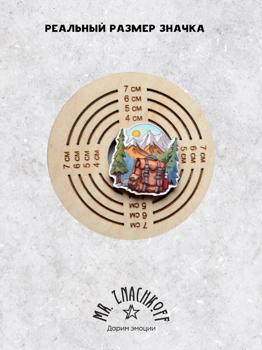 Отзывы на Значок Mr. Znachkoff "Рюкзак и горы", дерево, УФ-печать, влагостойкий, на рюкзак