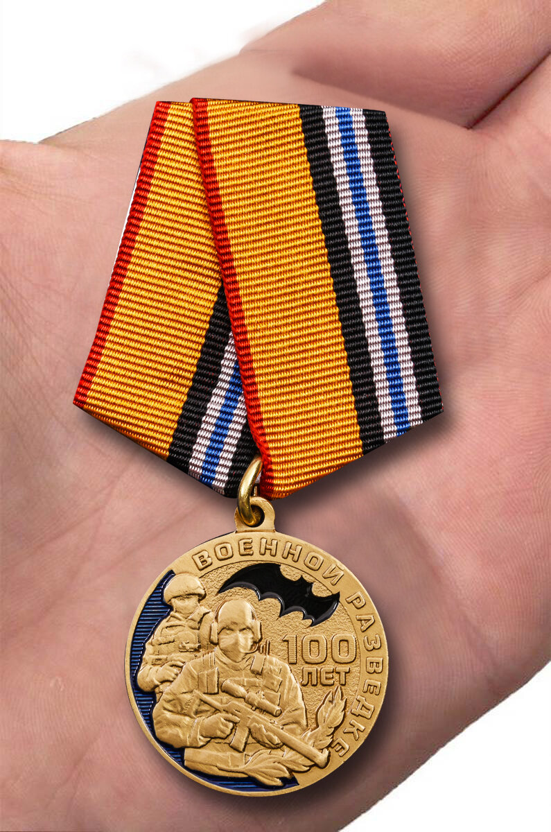 10 цен на Медаль "100 лет Военной разведке", муляж, латунь, диаметр медали 32мм