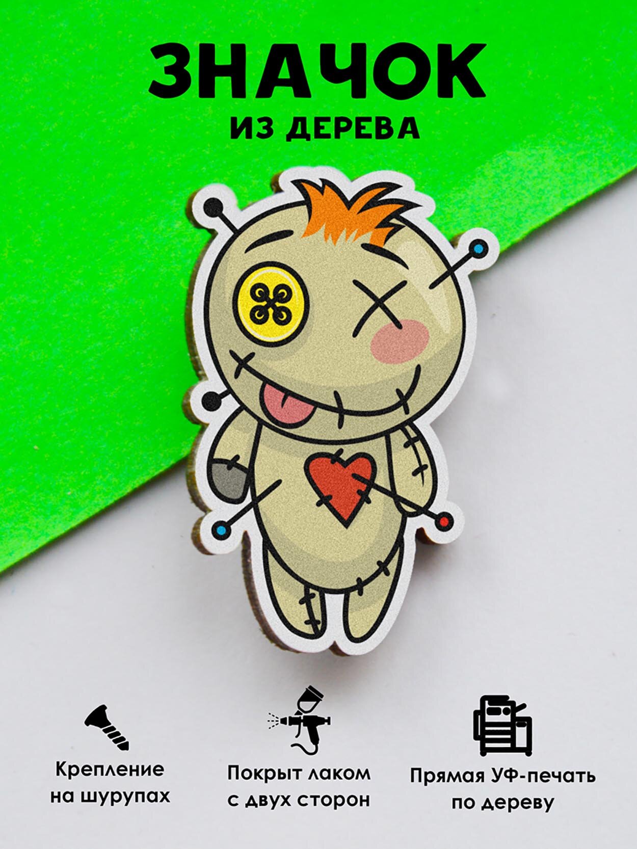 Отзывы на Значок Mr . Znachkoff "Кукла Вуду", дерево, ручная сборка, УФ-принт, 4х4 см