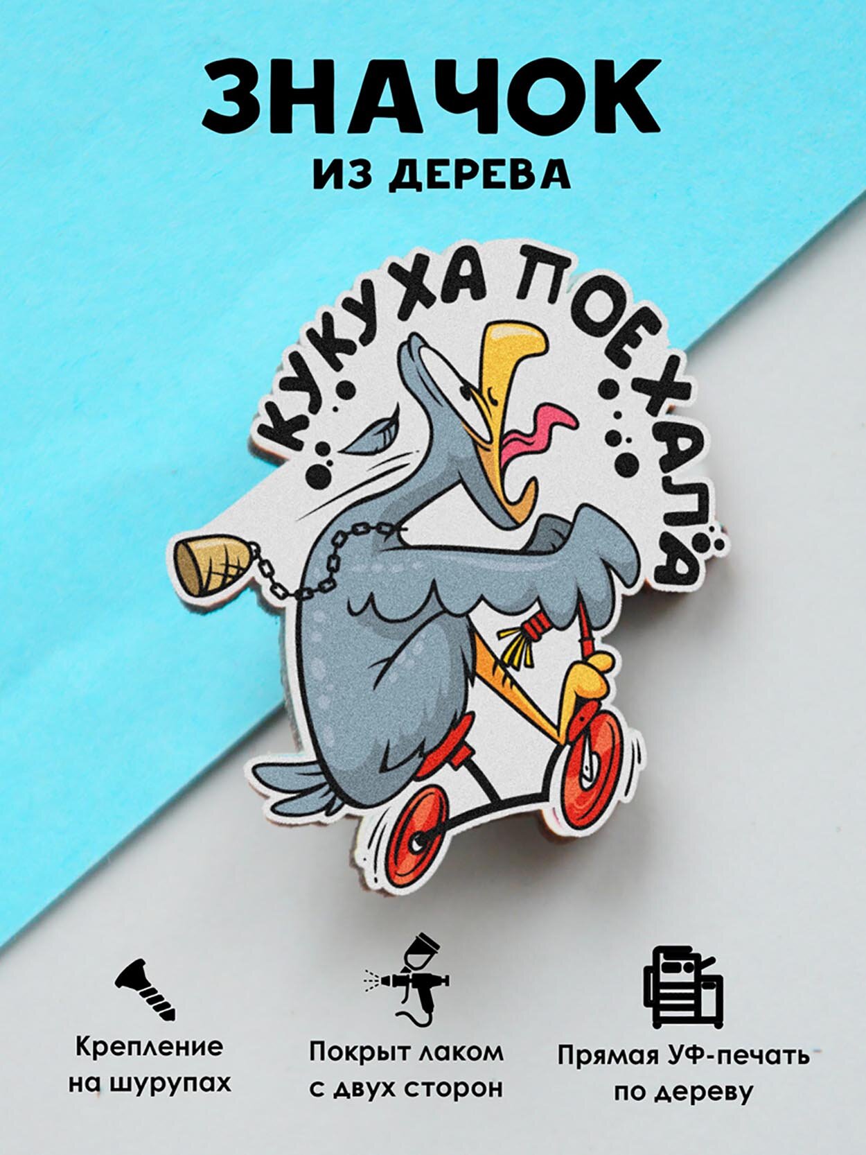10 цен на Значок Mr. Znachkoff "Кукуха", дерево, УФ-печать, влагостойкий лак, ручная сборка, на рюкзак