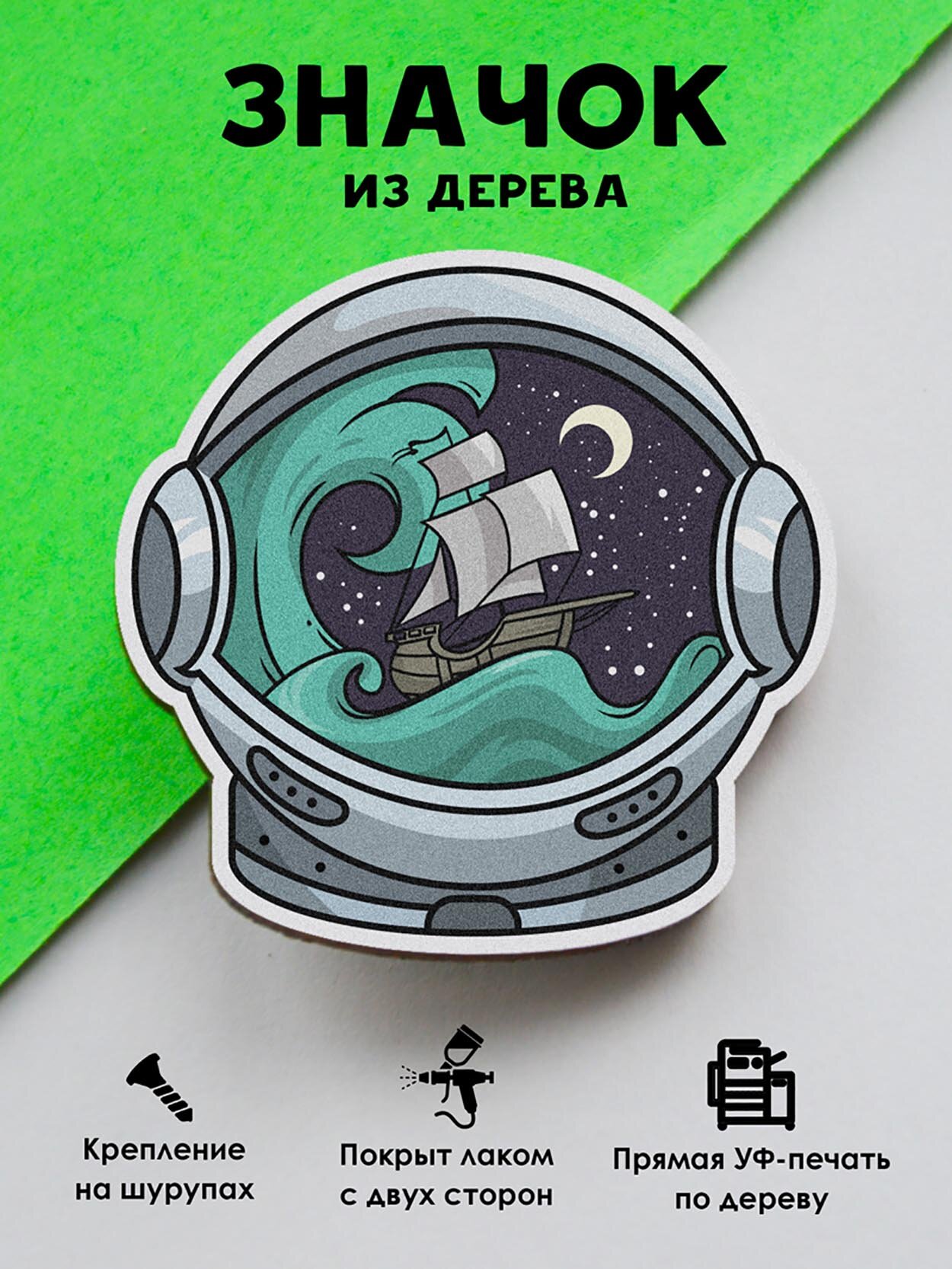 10 цен на Значок Mr. Znachkoff "Шлем космонавта", дерево, ручная сборка, УФ-принт, 4х4 см