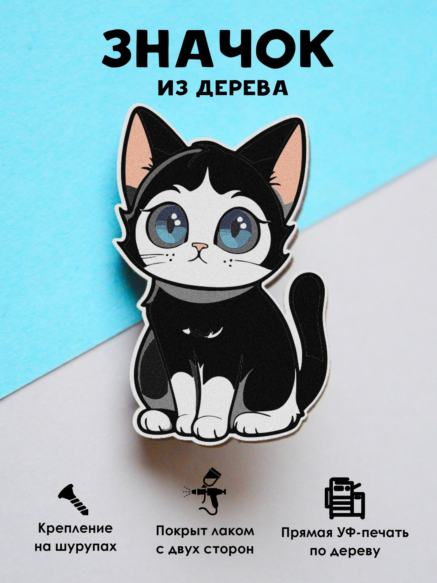 Значок Mr. Znachkoff "Черно-белый кот", дерево, УФ-печать, влагостойкий лак, ручная работа информация:
