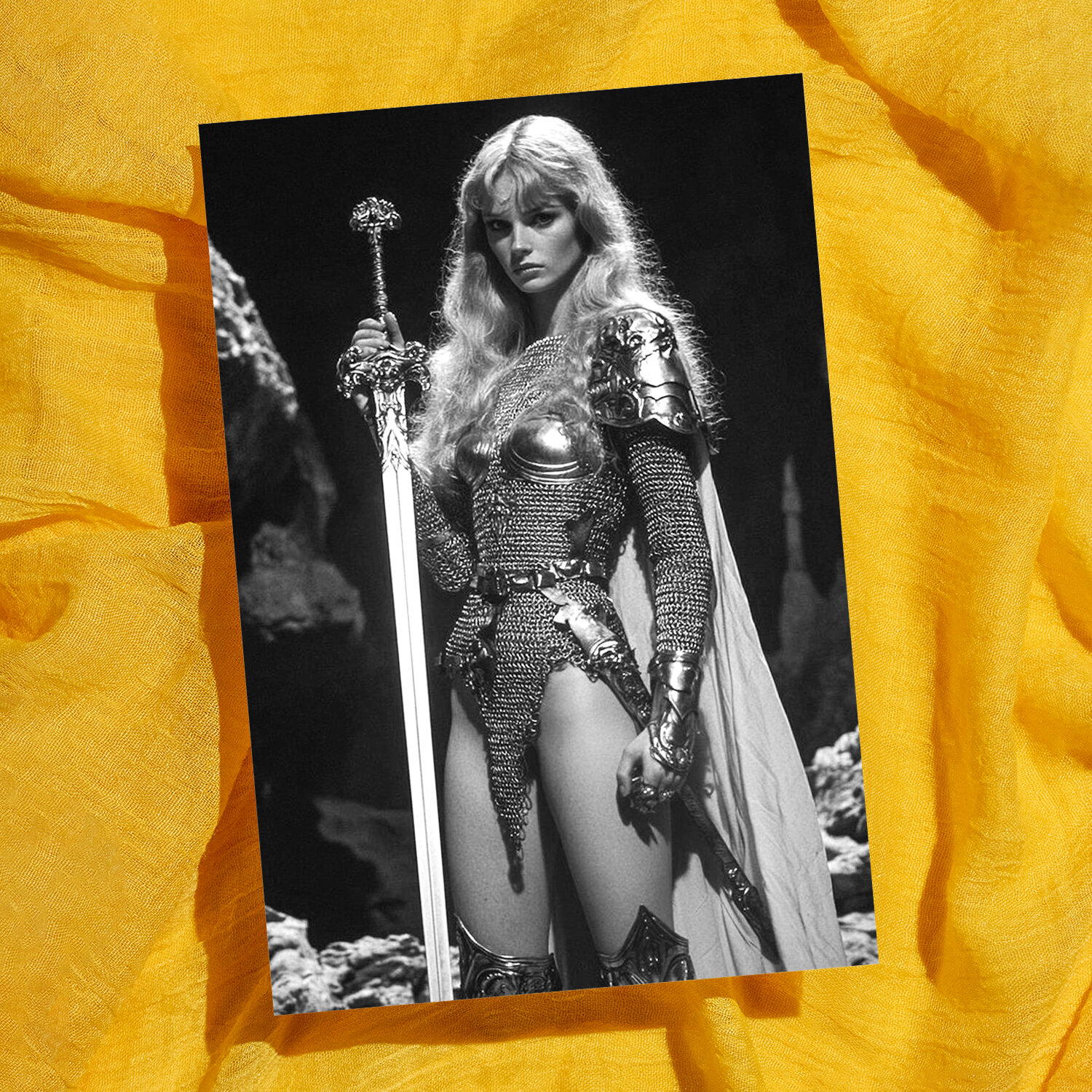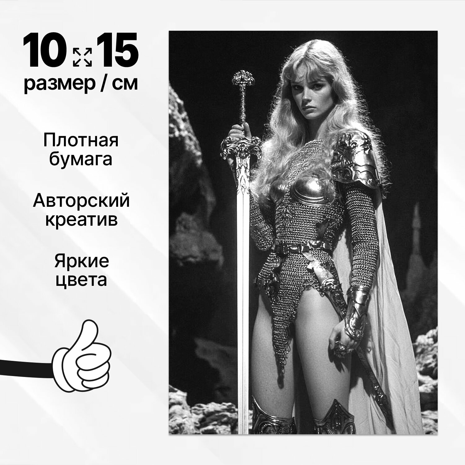 10 цен на Открытка "Девушка в доспехах" (10х15см, плотная бумага, авторский креатив)