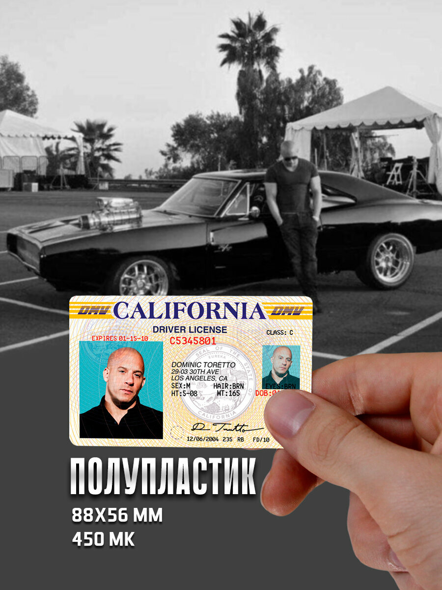 Сувенирные водительские права Вин Дизель (DRIVER LICENCE CALIFORNIA) 86х56 мм информация: