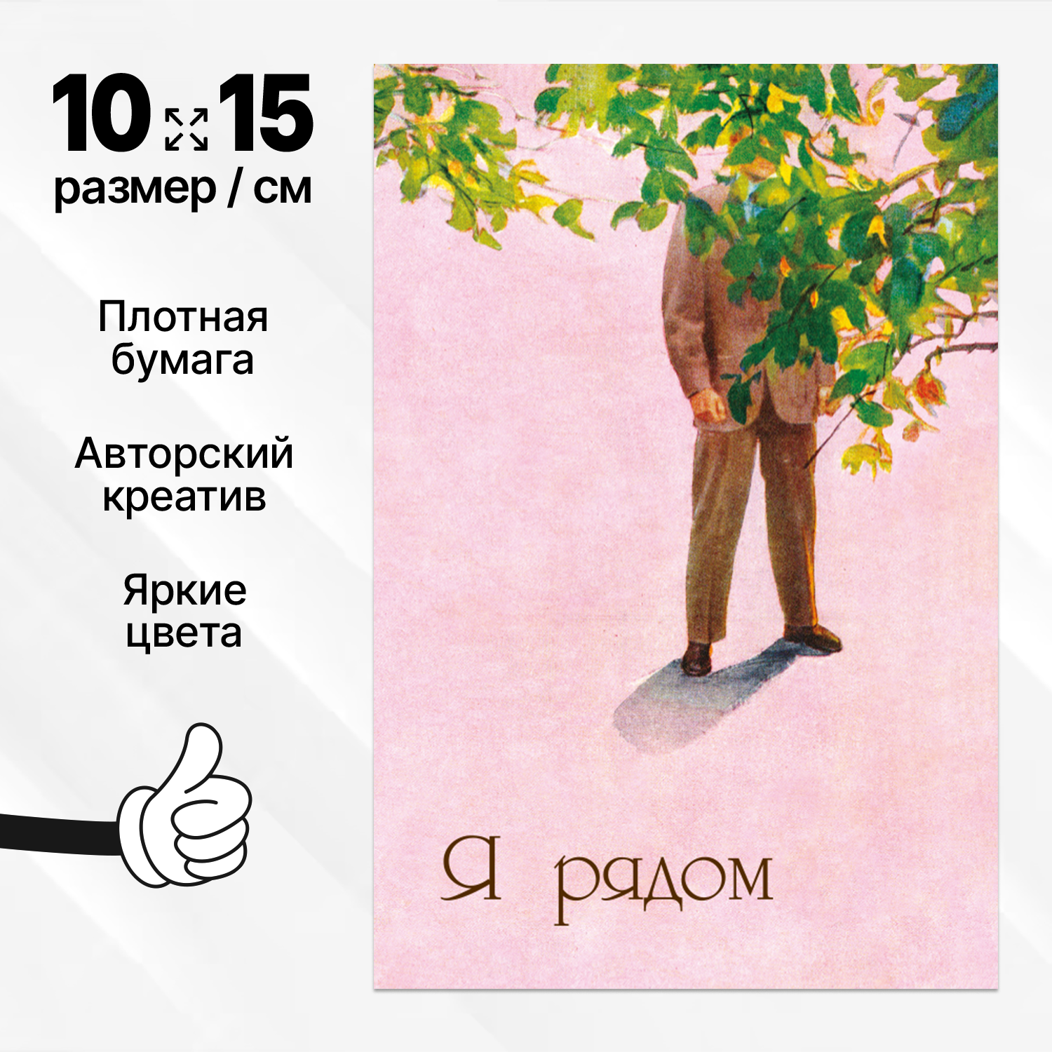 Дизайнерская открытка "Я рядом" (ретро стиль, авторский креатив) информация: