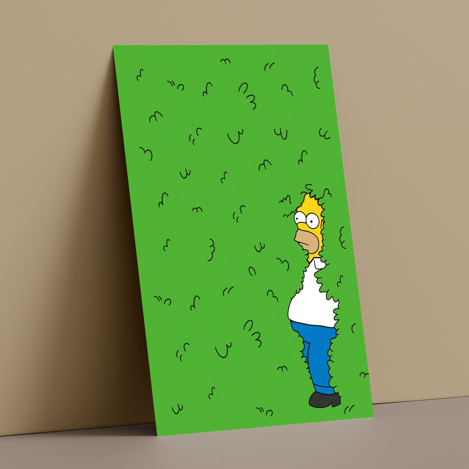 10 цен на Дизайнерская открытка "Гомер в кустах Симпсоны" (10х15см, плотная бумага, авторский креатив)