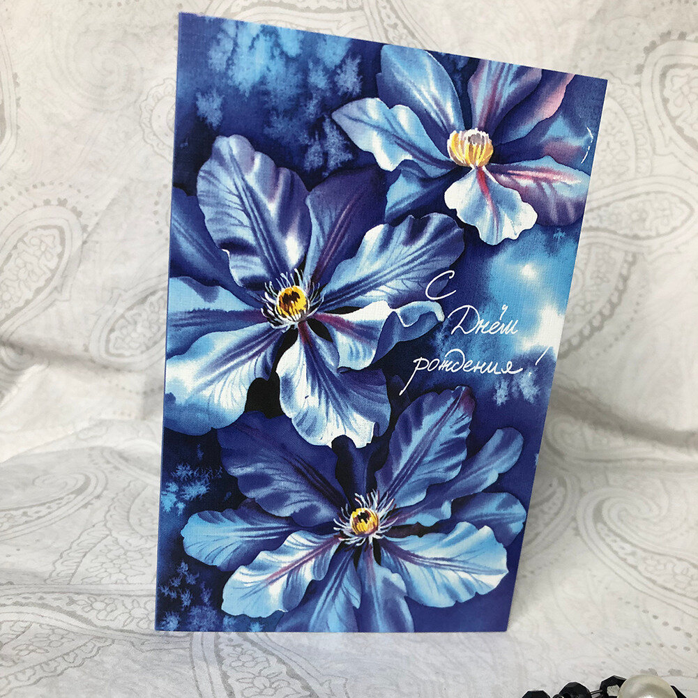 Отзывы на Открытка дизайнерская "С днём рождения!" синие цветы 15х10,5см
