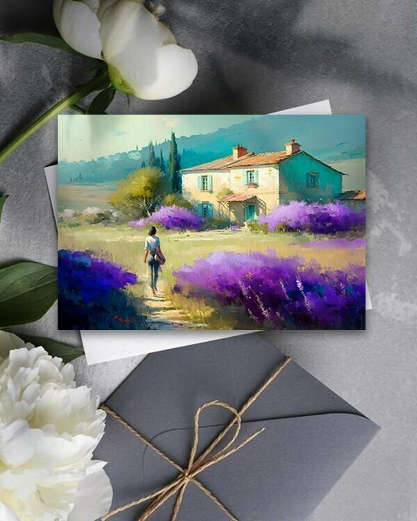 Набор открыток "Летний пейзаж с домиком", 10.5 см х 15 см, 4 шт, InspirationTime, на подарок и в коллекцию